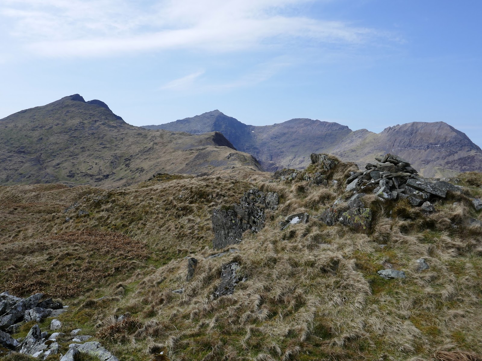 The summit is grassy and is marked with a small cairn. In clear visibility, the view down to Llyn Gwynant is regarded as one of the finest in Snowdonia.