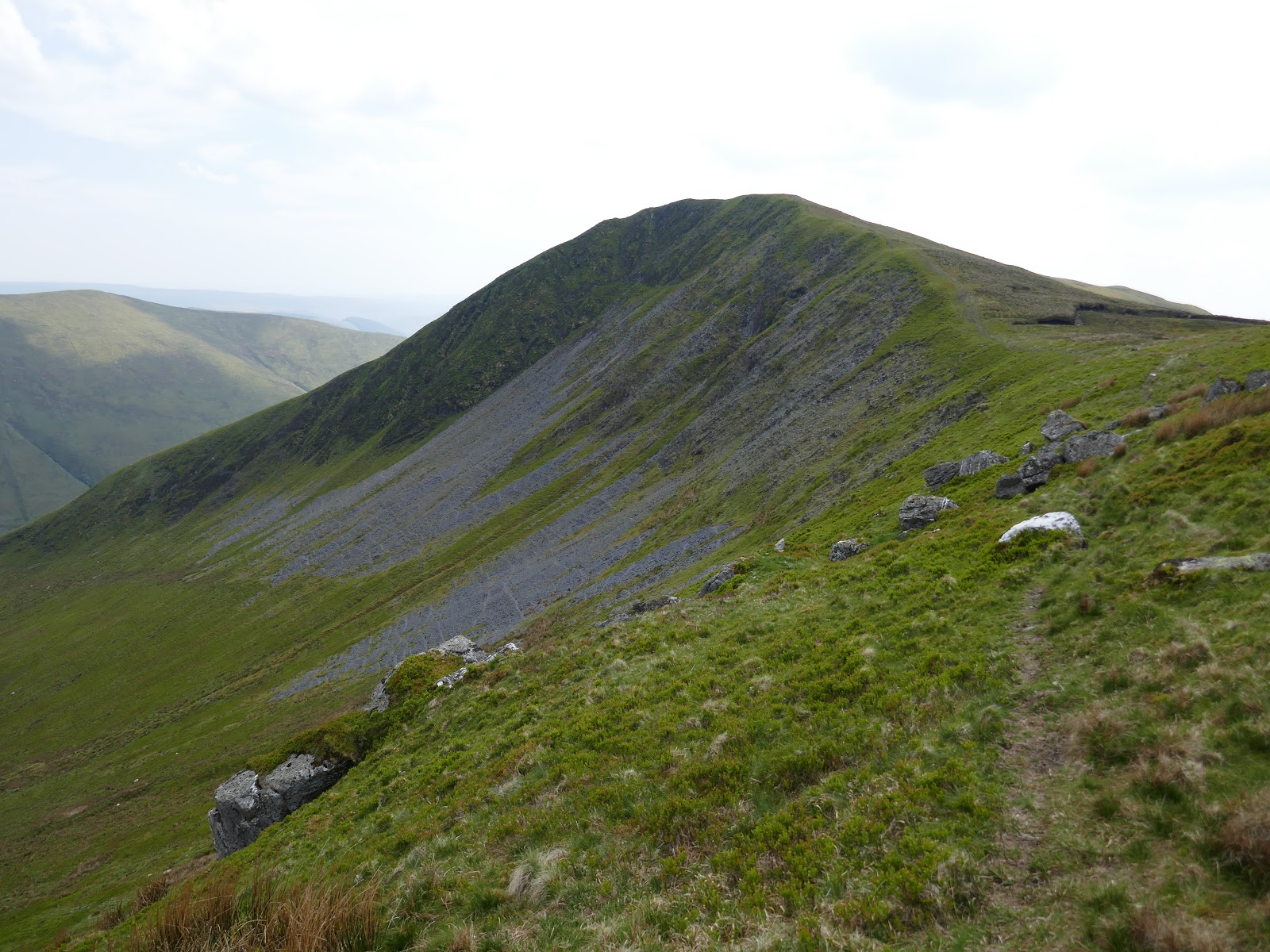 The peak’s southern face is very steep and forms one of the back walls of Cwm Cywarch.