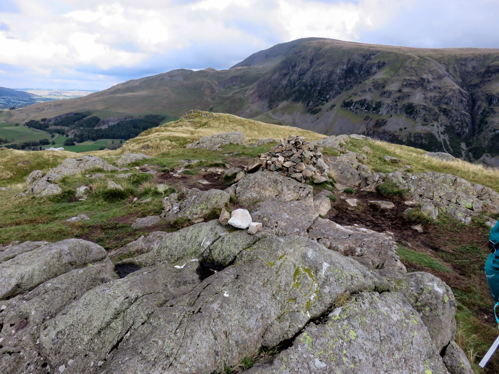 The summit has a cairn set on an outcrop and commands a fine view of the surrounding fells. The giants of Skiddaw and Blencathra dominate the view to the north, and Clough Head and the Helvellyn range the view east.