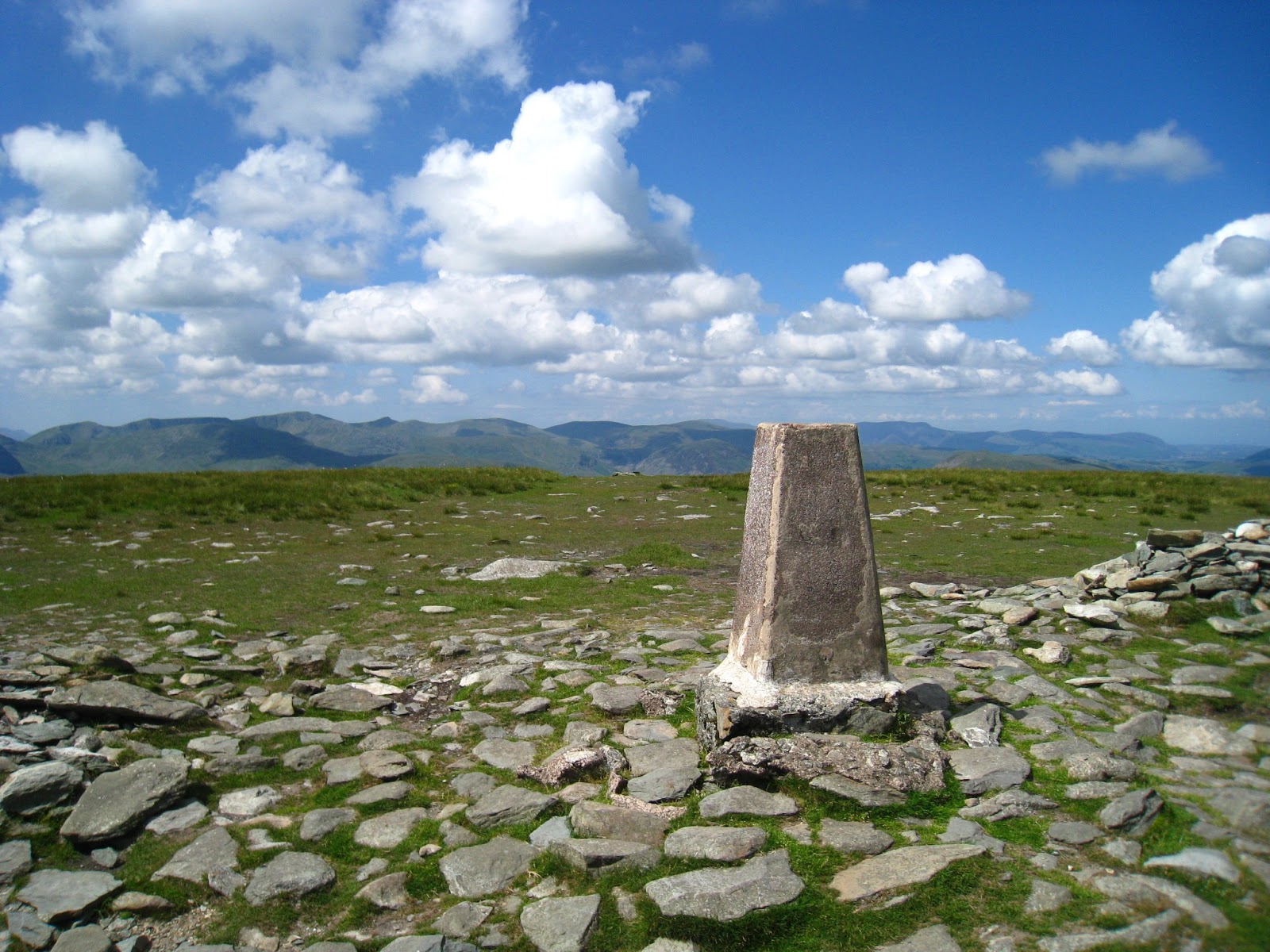 | The summit pillar overlooking the Eastern Fells |