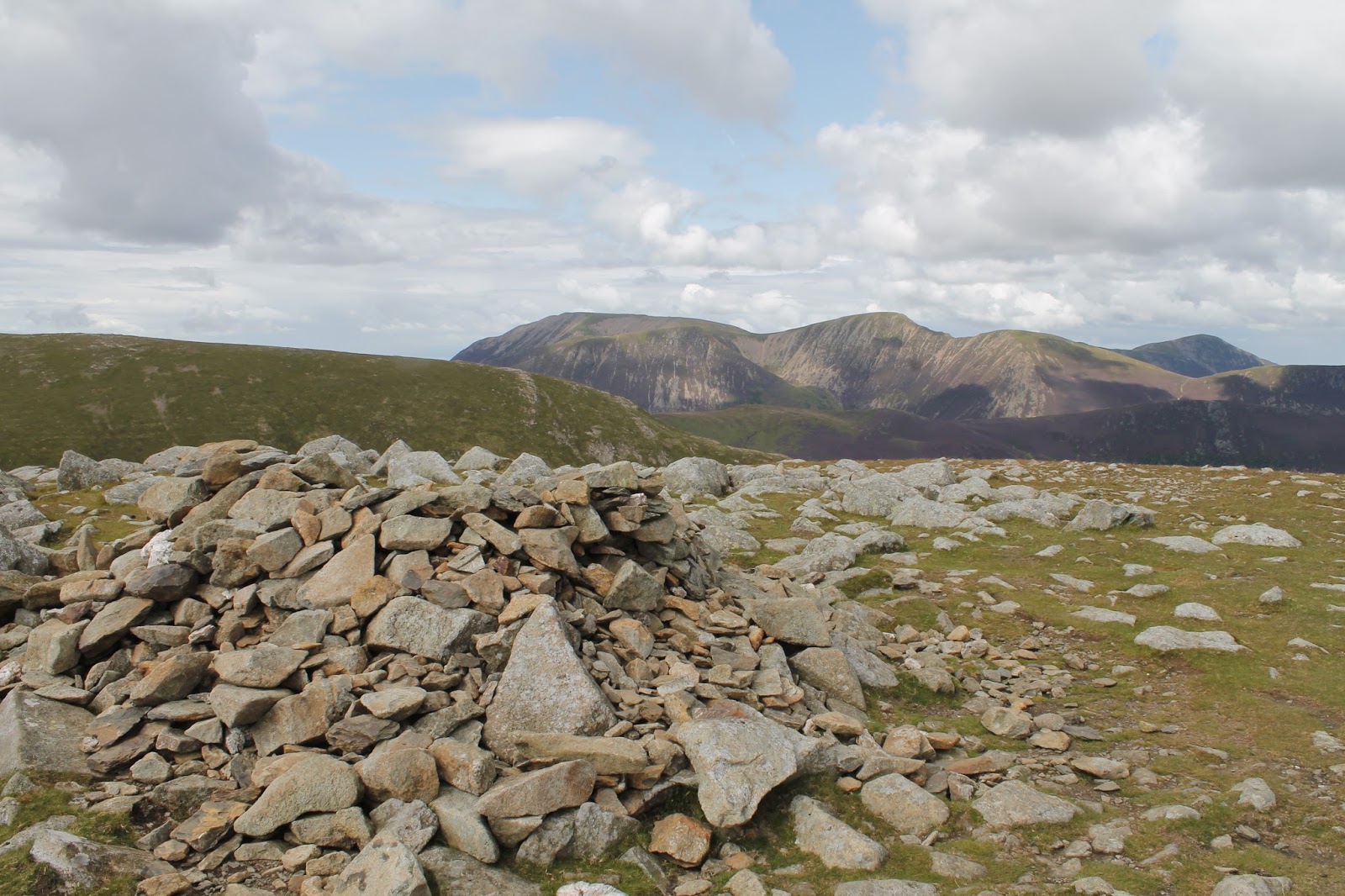 The summit carries an untidy cairn amid some embedded rocks. The view north into the Newlands Valley is excellent.