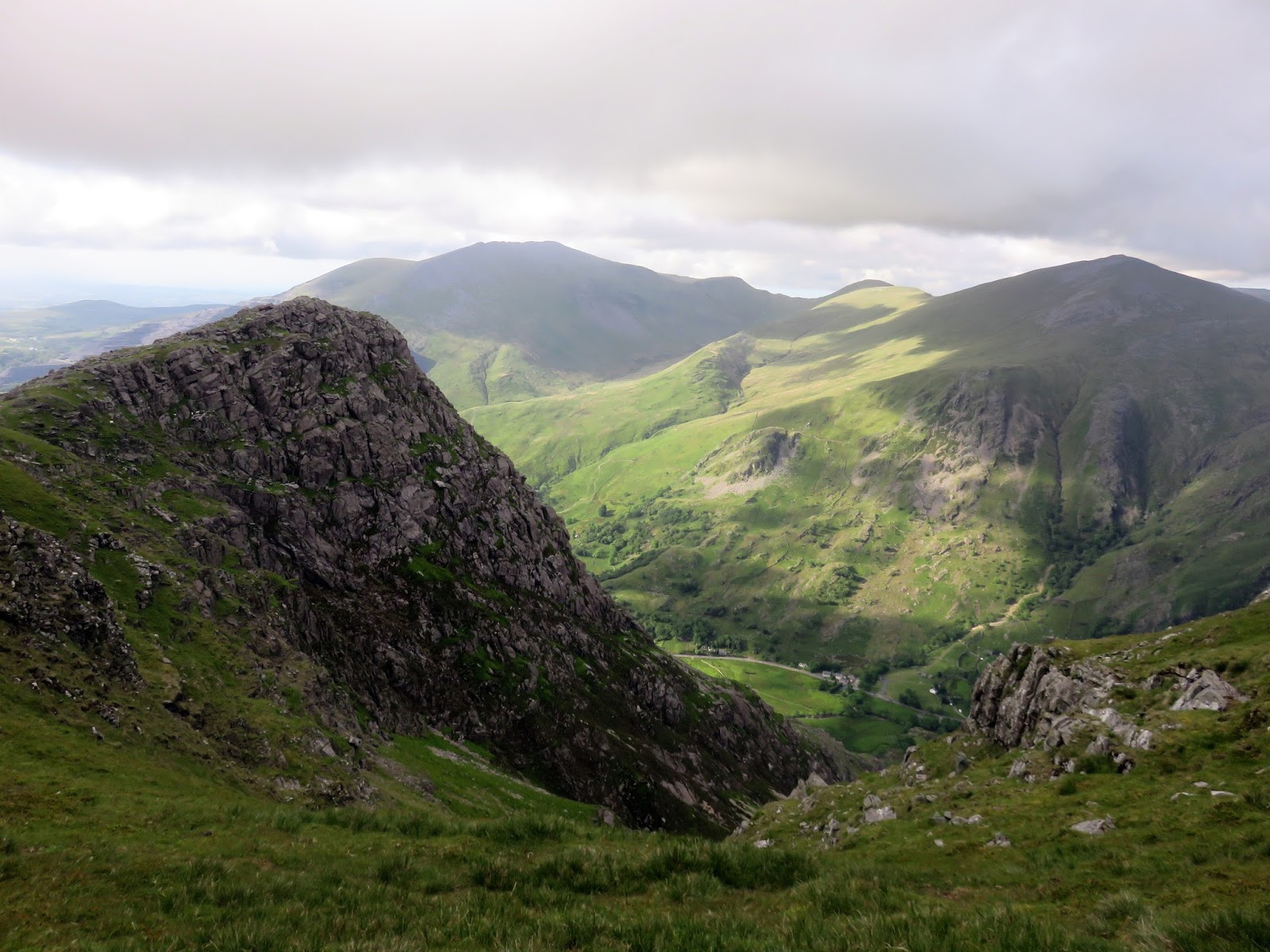 The summit is a rocky peak sitting out from cliffs which fall steeply down to the Nant Peris valley. The viewpoint is commanding, where the full prominence of Glyder Fawr, Y Garn, Elidir Fawr and Crib Goch can be admired.