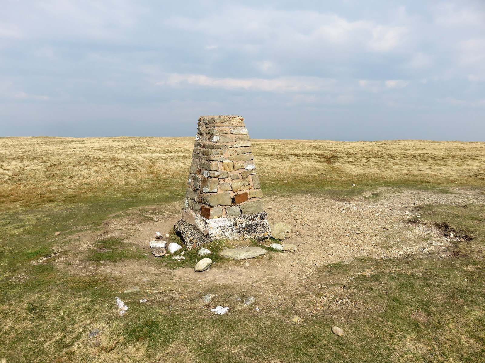The summit is topped by an Ordnance Survey pillar. An extensive Lakeland view can be seen to the west with the Pennines more distant to the east.
