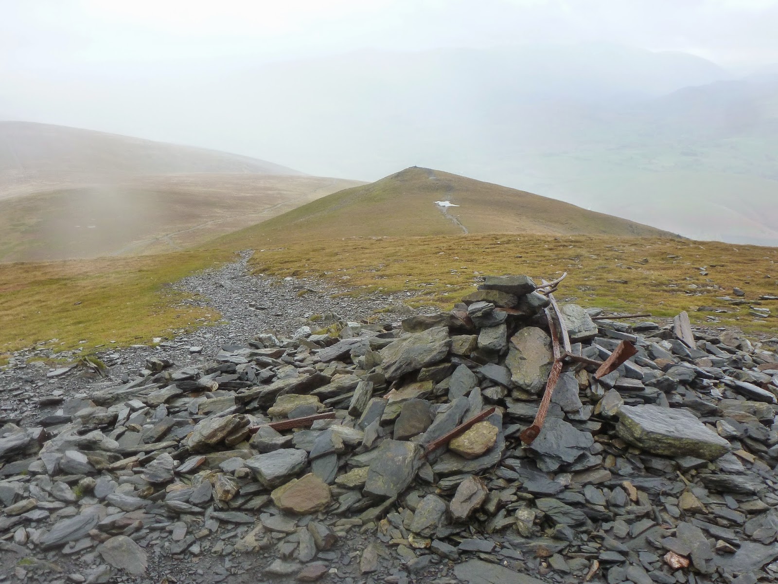Despite its name (which makes it sound like a minor top of Skiddaw) Little Man, in fact, lies 1.5 kilometres to the south-east. With a topographical prominence of 61 metres, Little Man qualifies comfortably as a Hewitt and Nuttall hill. Half a kilometre to the south-east of the main summit lies a lower top called Lesser Man (815 metres), this is adorned with an unusual cairn consisting of rocks and old fence posts.