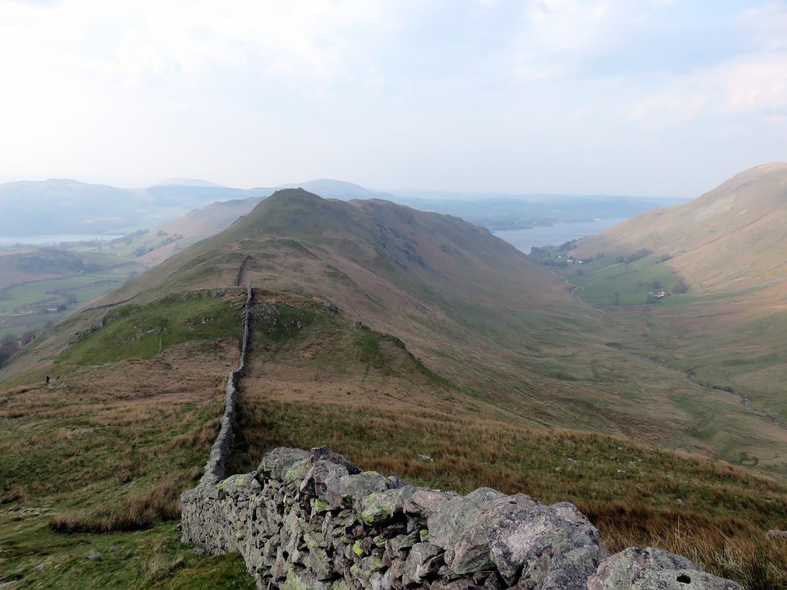 The Steel Knotts ridge, also termed Martindale Edge, runs for about two miles in total. To the east is the steep-sided valley of Fusedale, its beck forming the boundary of the fell. This flows north to the Lake at Howtown, below the nose of the ridge. There are some crags on this side, particularly at the northern end.