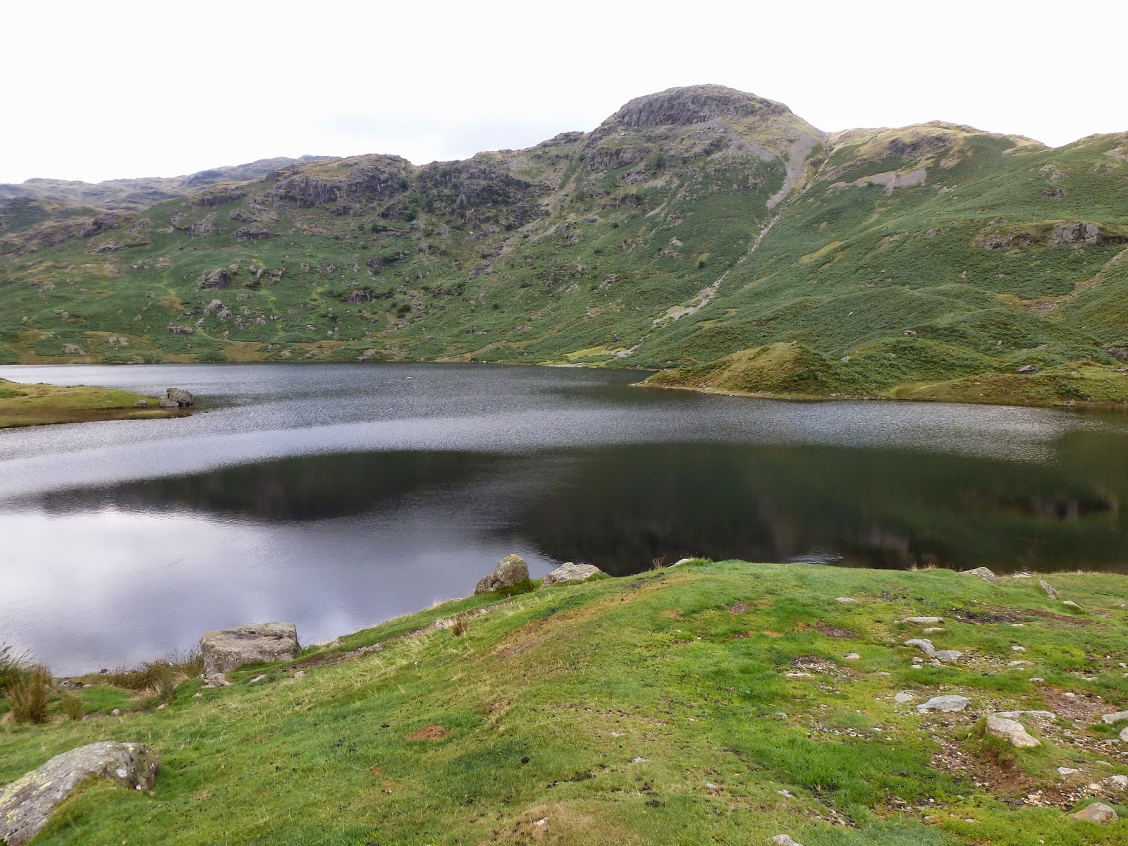 “The dominant feature in the rugged skyline of Easedale Tarn is the arching curve of Tarn Crag, above a wild rocky slope that plunges very steeply to the dark waters at its base. Rough that this slope is, at least it has the benefit of sunlight to colour and illuminate the grimness”.