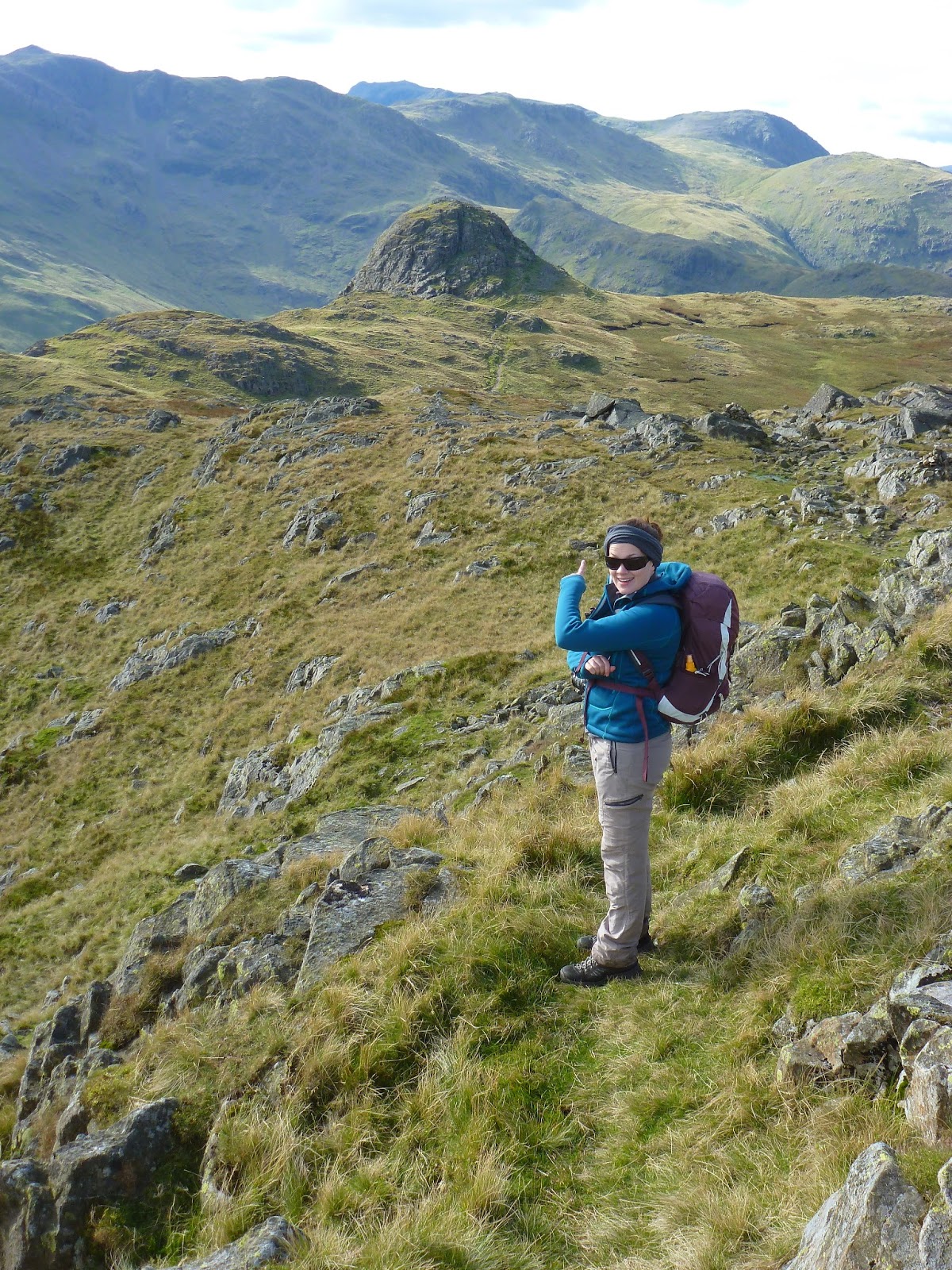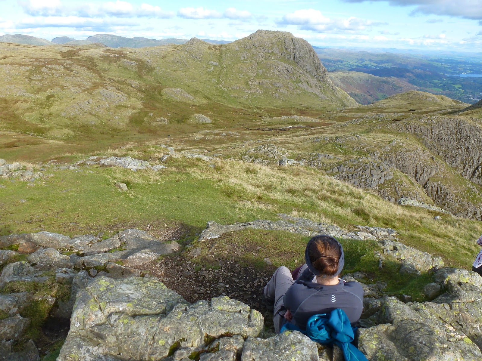 | A break on the summit of Pike O’Stickle to admire the scenery of Harrison Combe |