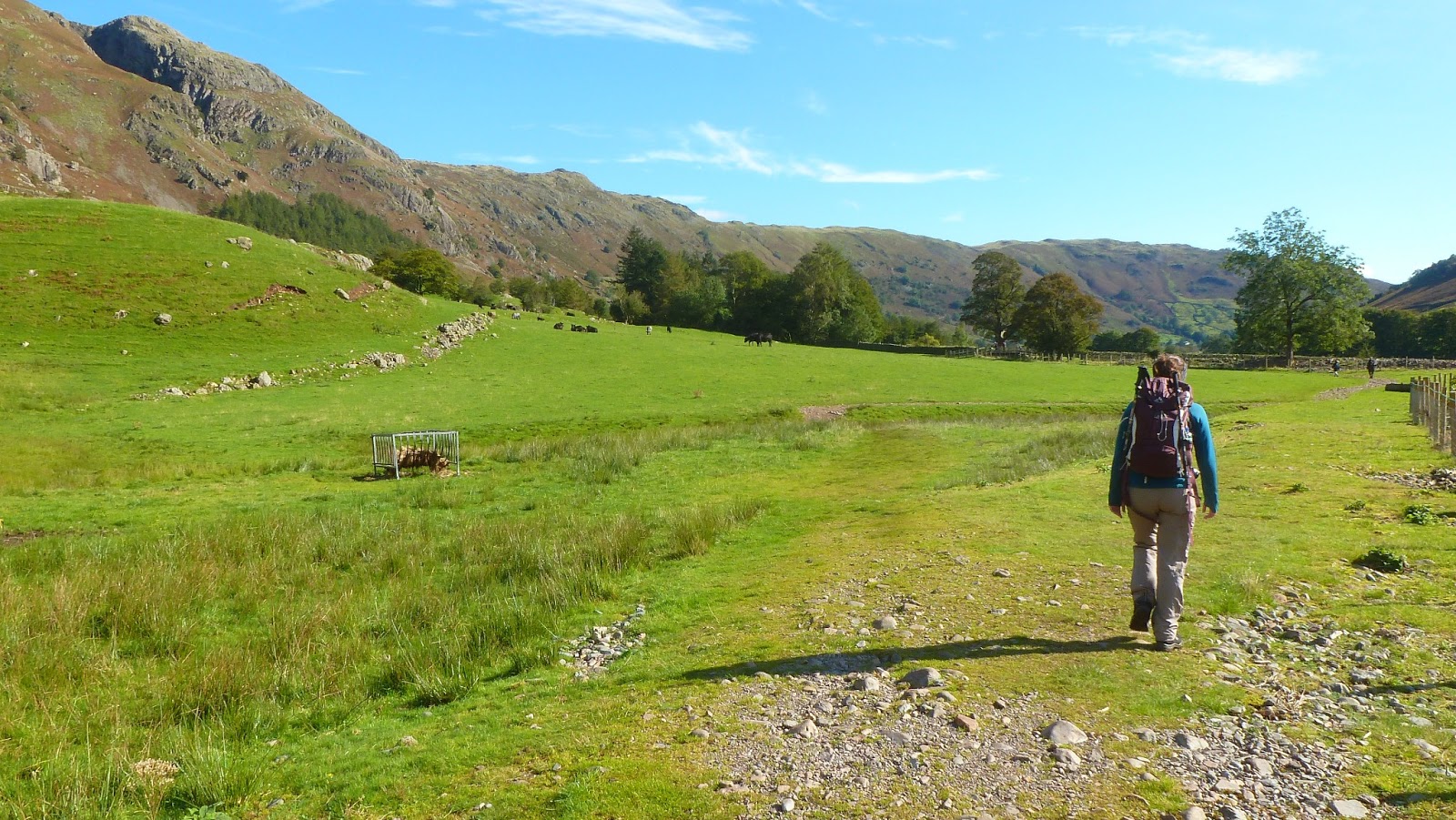 Using a free weekend in September, we chose to camp at the National Trust site that is ideally located near the head of the Langdale valley. While expensive, it is very well managed and has all the facilities you could need as a rather hap-hazard camper. Being the end of September, the weather could have been anything from pleasant warm sunshine to driving rain, so we packed accordingly. We had anticipated it to be a rather cold walk thanks to the previous night’s chill inside the tent. Fortunately for us, as we started off and made our way along the path to the New Dungeon Ghyll hotel, the weather had presented us with an almost Spring-like day that made our layering up seem a bit daft.