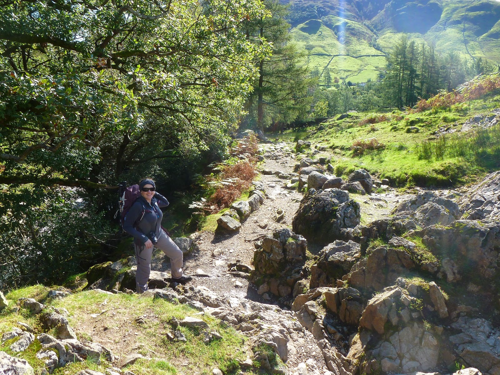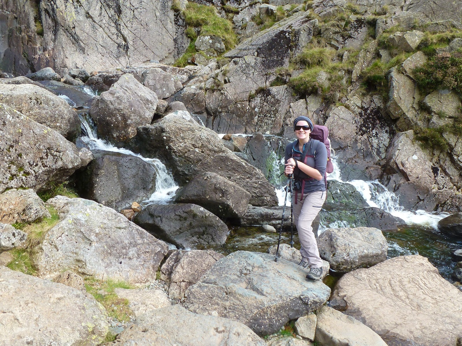 | Sara after successfully crossing Stickle Ghyll. No wet feet this time |
