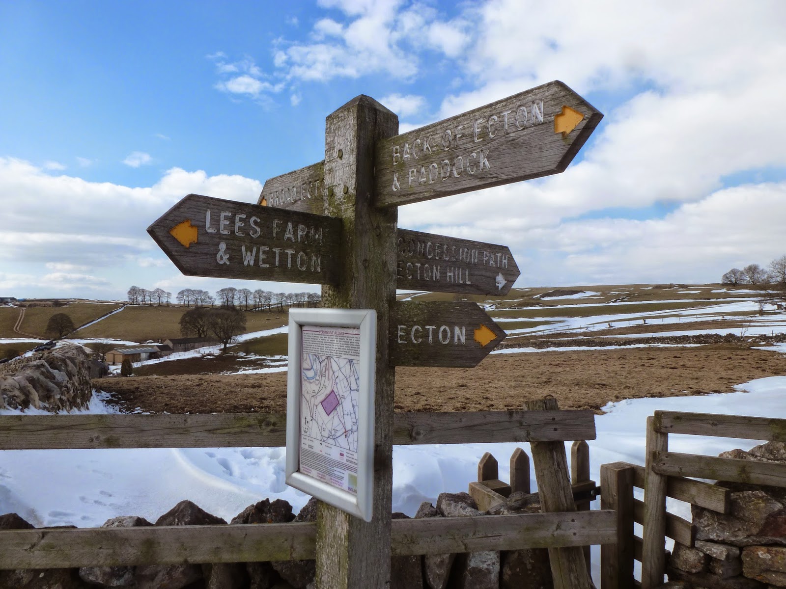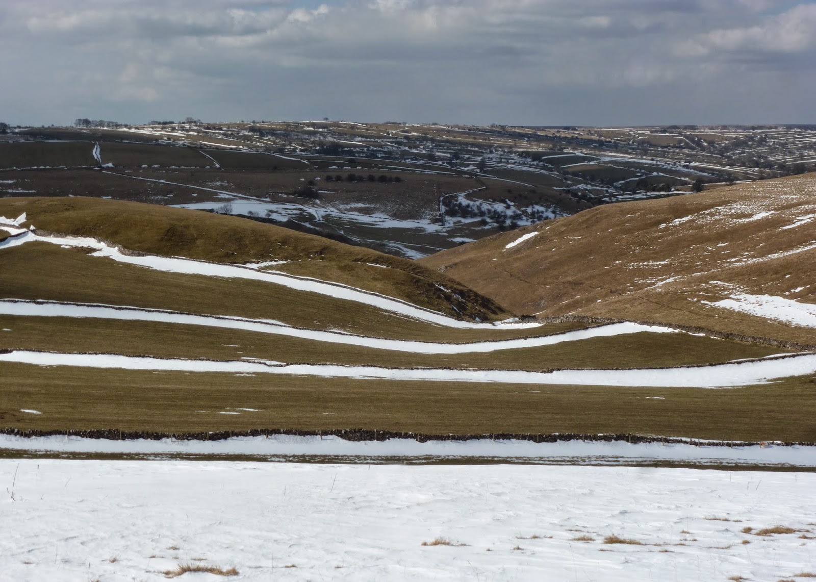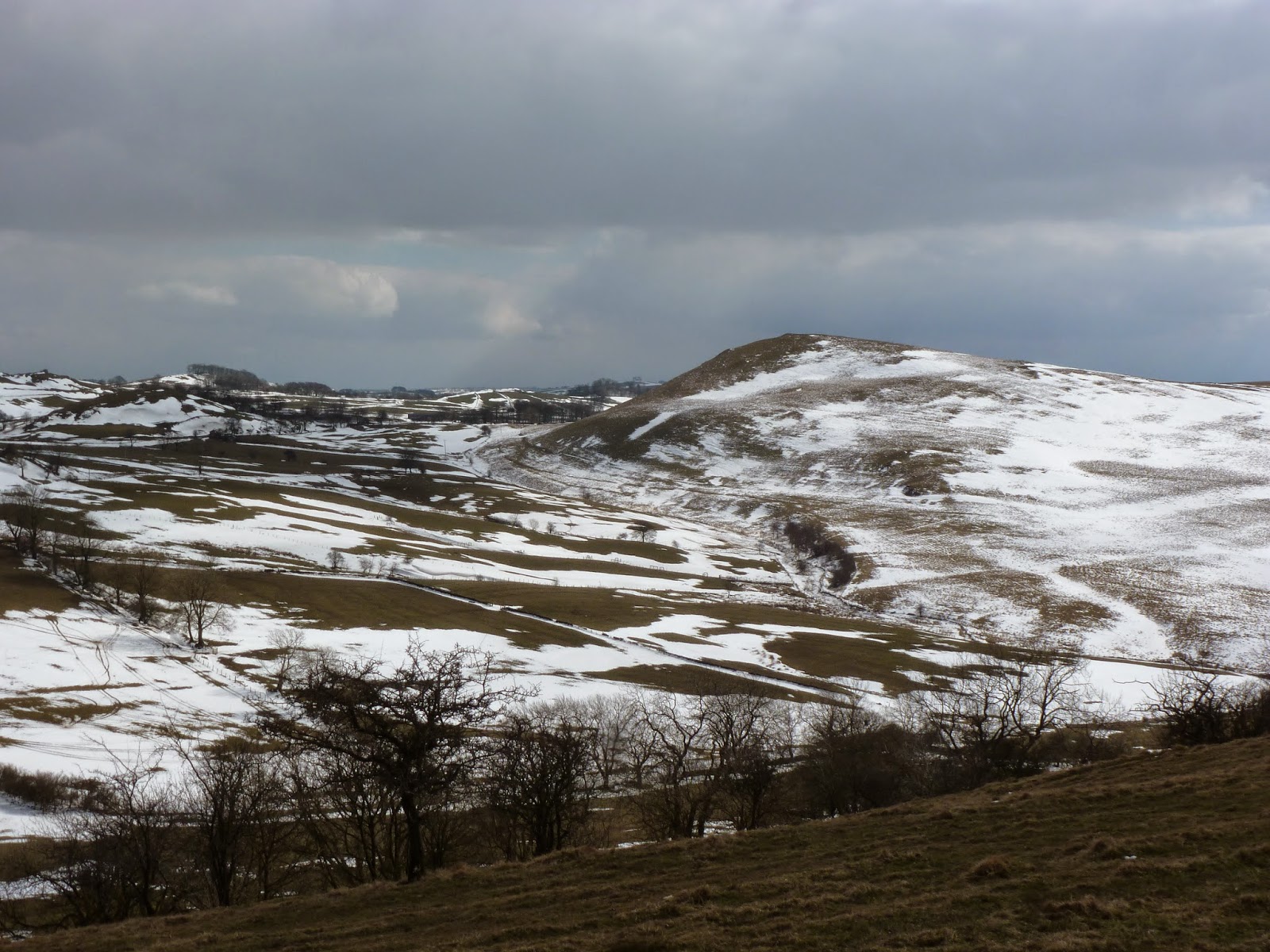We passed through the village and out onto a wide bridleway that out into the open countryside. We had a few stiles to cross on the way, a number of them were actually covered by the snow to such an extent that we simply walked over them rather than having to awkwardly climb over them as usual. The route leads between the two tops of Wetton Hill, a prominent landmark in the southern part of the National Park.