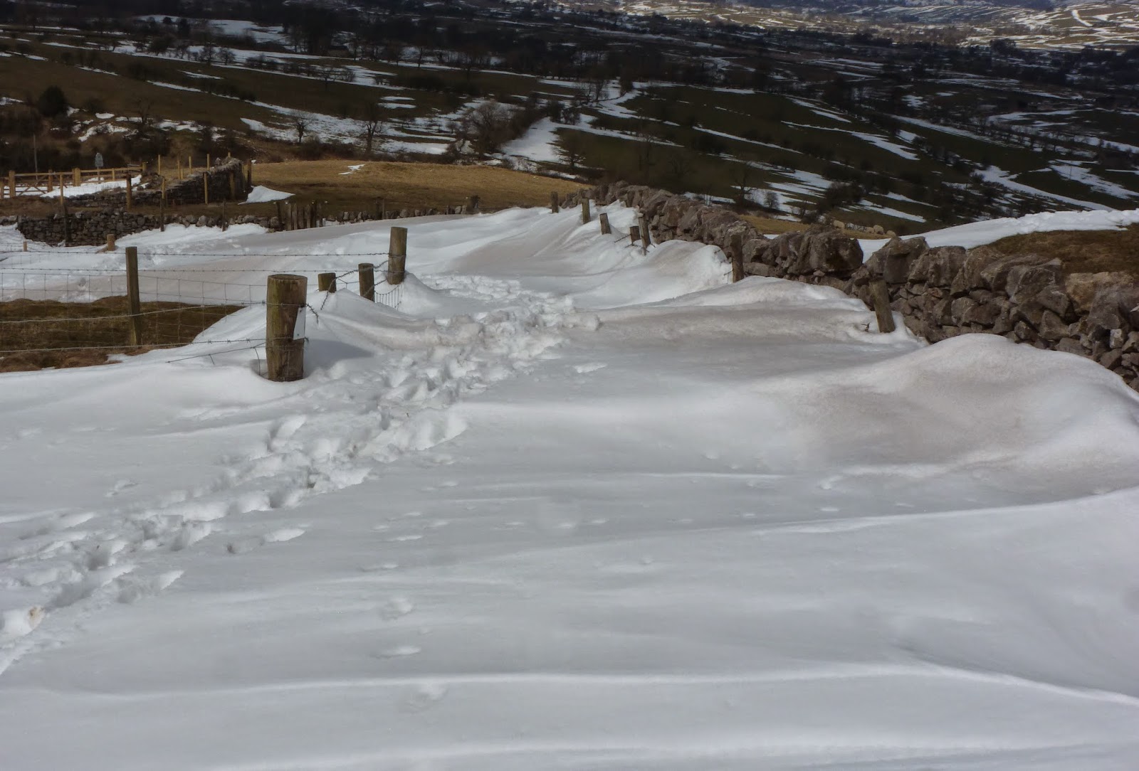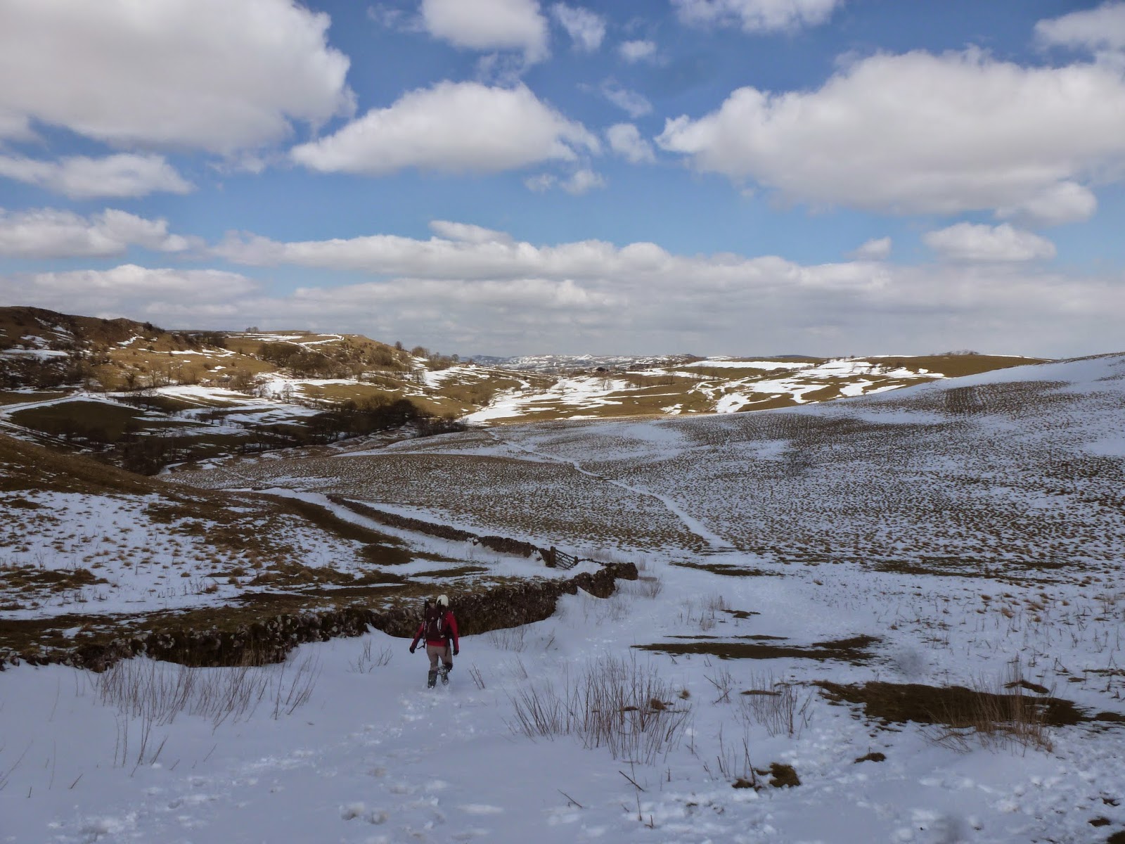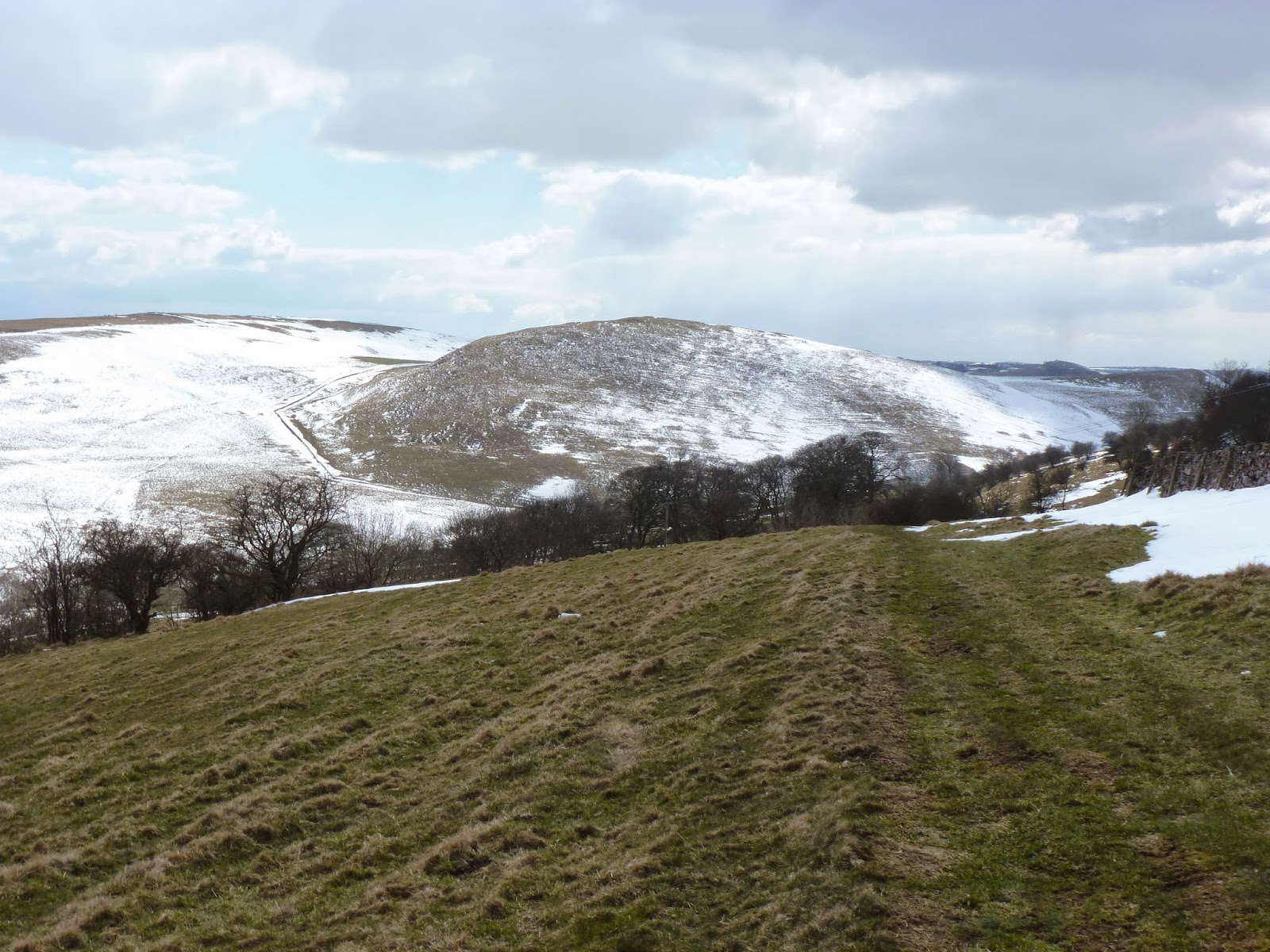 We passed through the village and out onto a wide bridleway that out into the open countryside. We had a few stiles to cross on the way, a number of them were actually covered by the snow to such an extent that we simply walked over them rather than having to awkwardly climb over them as usual. The route leads between the two tops of Wetton Hill, a prominent landmark in the southern part of the National Park.