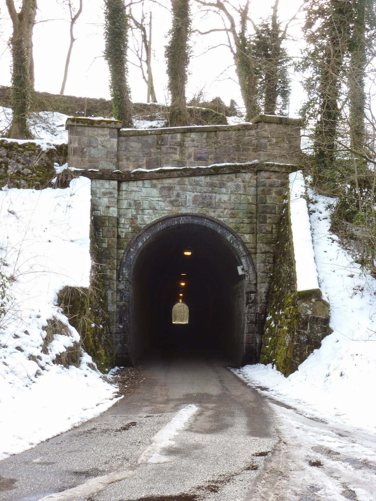You can follow the River Manifold on either side, the Manifold Way follows the eastern banks while a small lane follows the western. We followed the lane, passing through Swainsley tunnel on the way. It was built at the insistence of Sir Thomas Wardle, a L&MVLR director, so that the view from nearby Swainsley Hall should not be spoilt. Now it accepts light vehicles in single file and the inevitable foot traffic of pedestrians. There are a number of refuges cut into the walls for precisely this purpose.