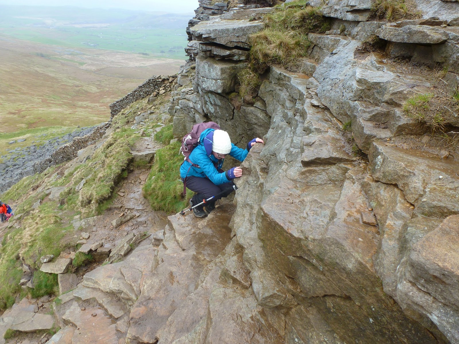 | Sara negotiates the ‘hands-on’ part of the climb |