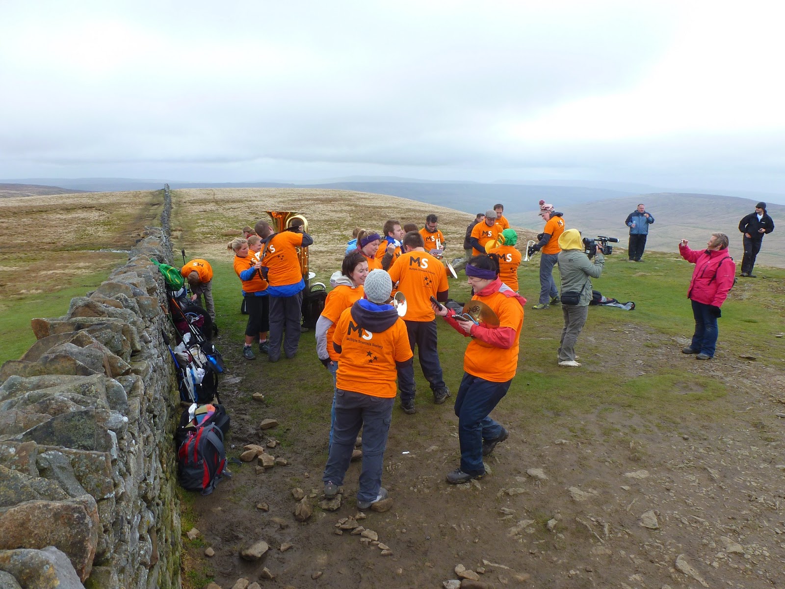 | The brass band warms up on the summit of Pen-Y-Ghent |