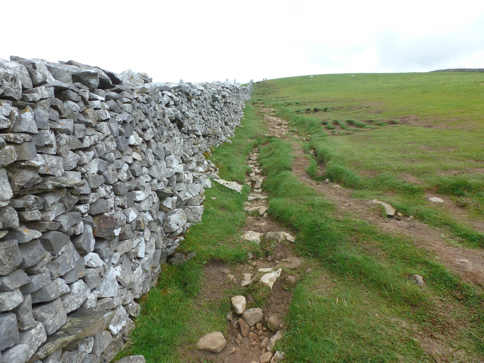 | The multiple eroded paths climbing the hill towards Pen-Y-Ghent |
