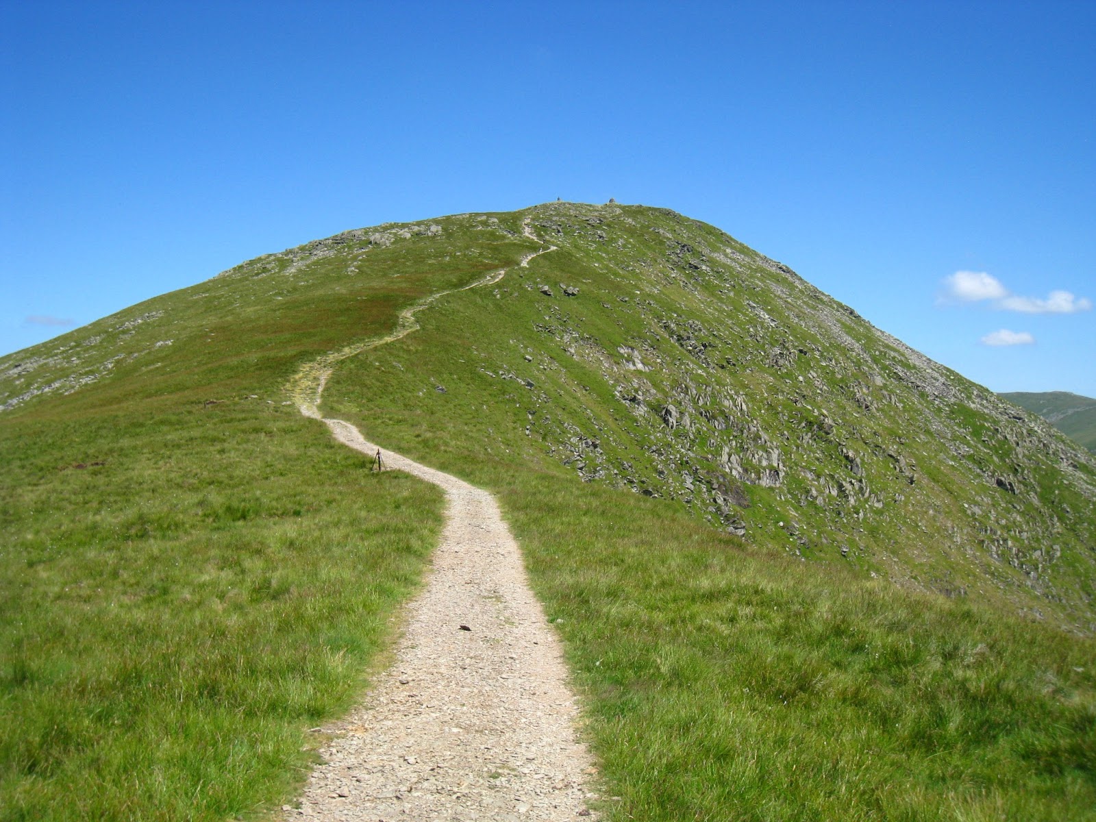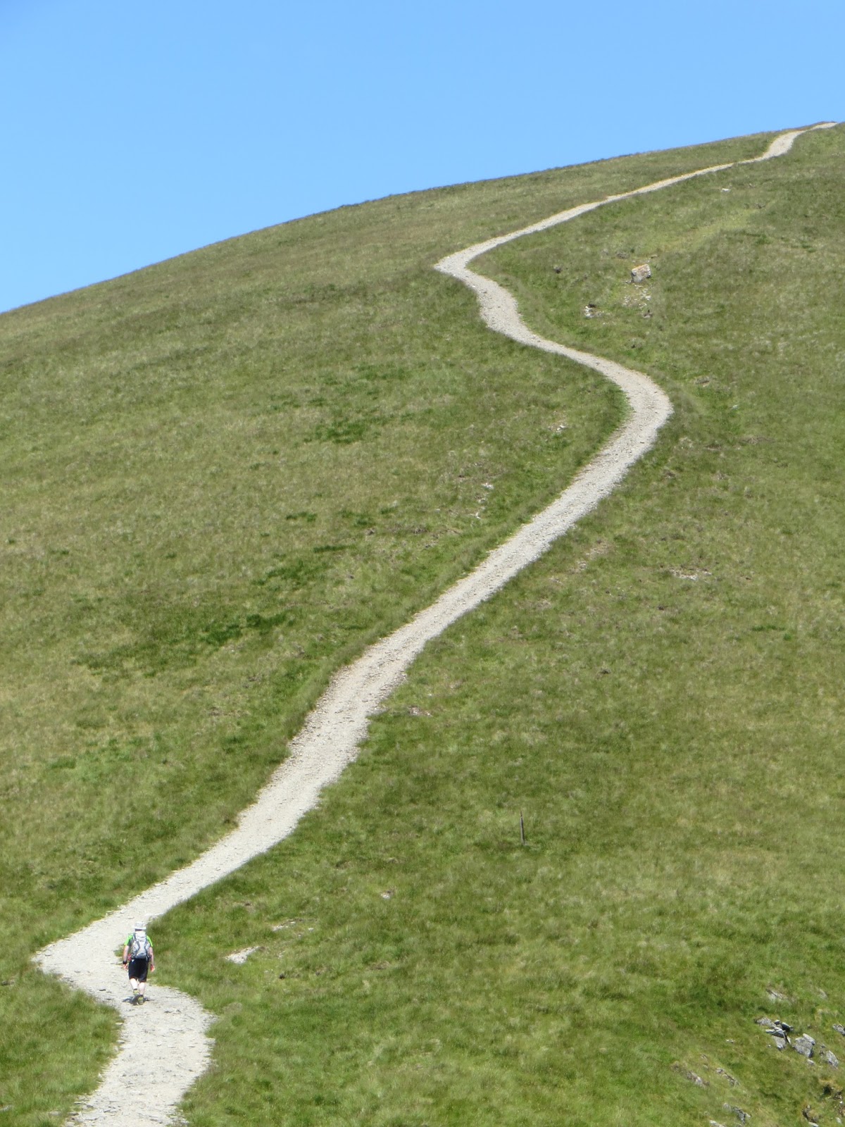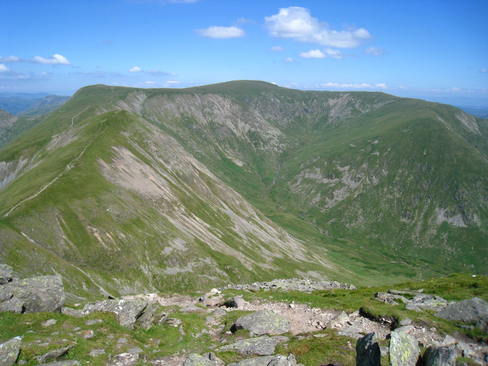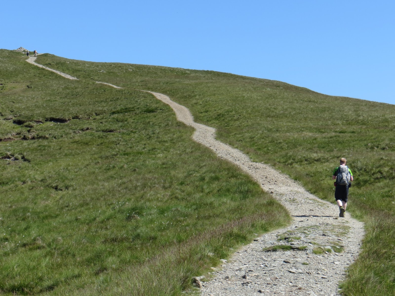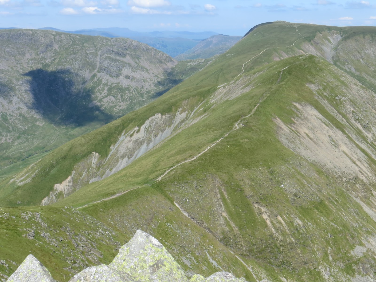 The path up Yoke is very wide and flat and also very bright. The reflecting sun made for a very hot and sweaty climb before reaching the summit and finally benefiting from a refreshing breeze. Yoke is the southern extremity of the ridge leading up to High Street and its name is thought to derive from the Old English word “geoc” meaning, correctly enough, mountain ridge.