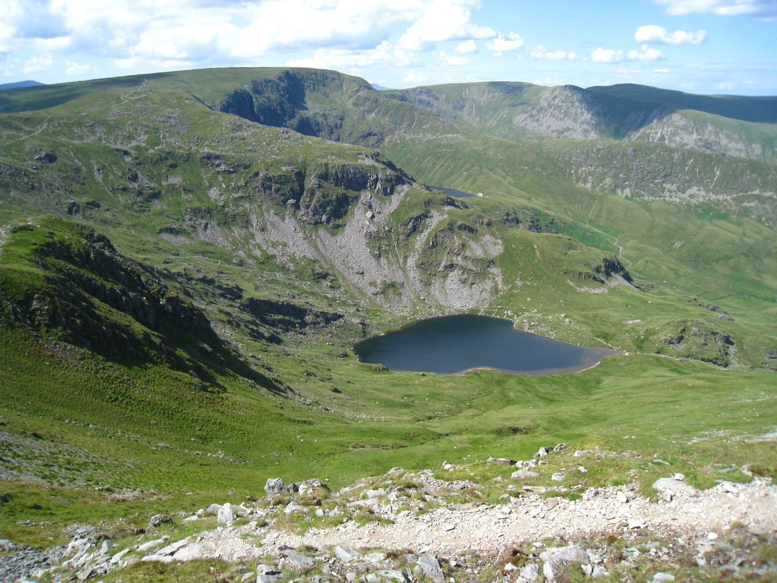 High Street to the deep crags that fall into Riggindale and Blea Water. Blea Water, a natural tarn in a glacially excavated hollow, is the deepest in the Lake District at over 61m deep.