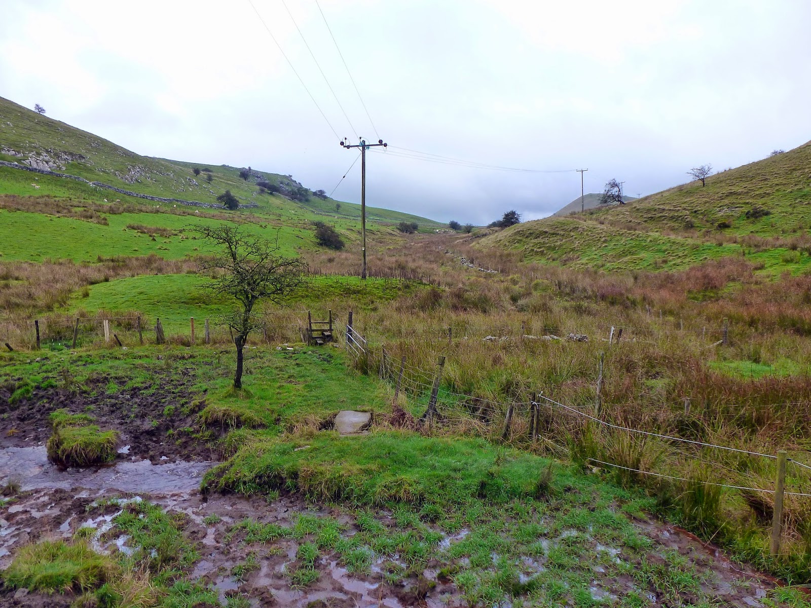 We started the walk in Hollinsclough, a small village sandwiched between the juvenile River Dove and the River manifold. Generally, there are a few parking spaces in a layby to the west of the village though these were full by the time we arrived. Leaving the car on the road outside the primary school, we set off, picking up the path heading north west beneath Hollinsclough Rake, the steep road that leads into the village from the west. Already, the going was difficult as the wet, muddy and uneven path made for a slow, careful plod.
