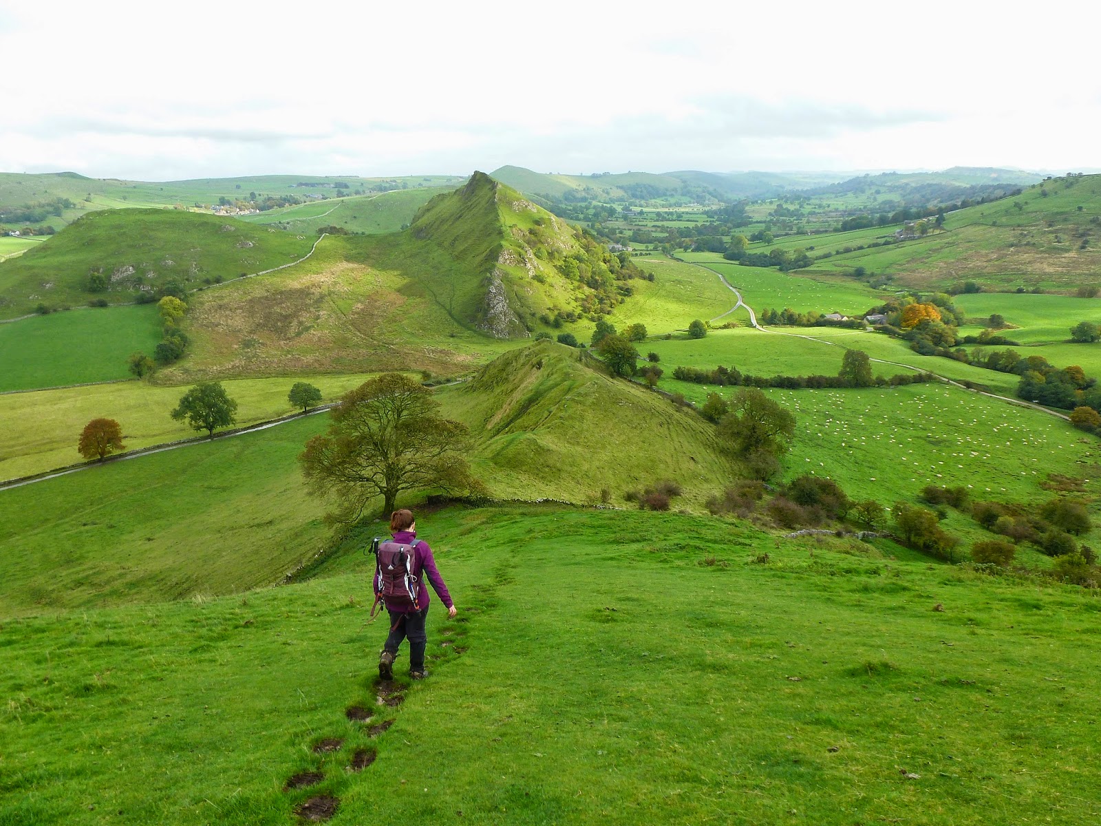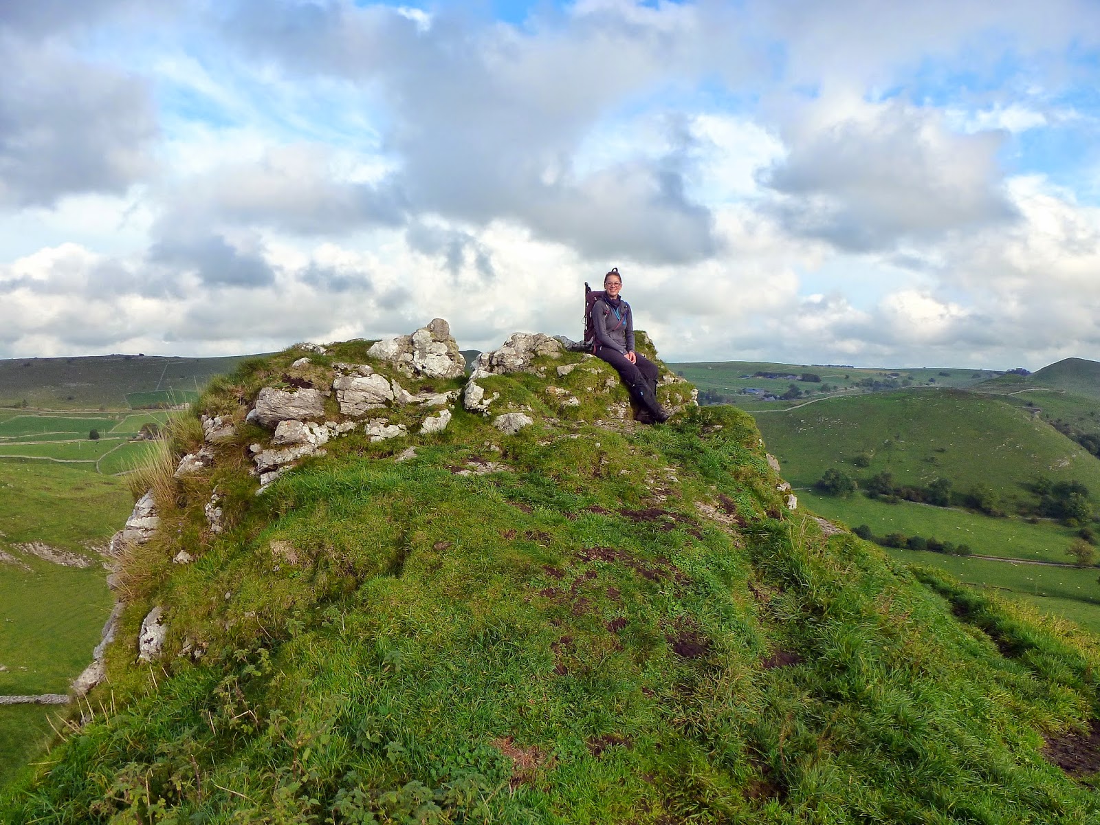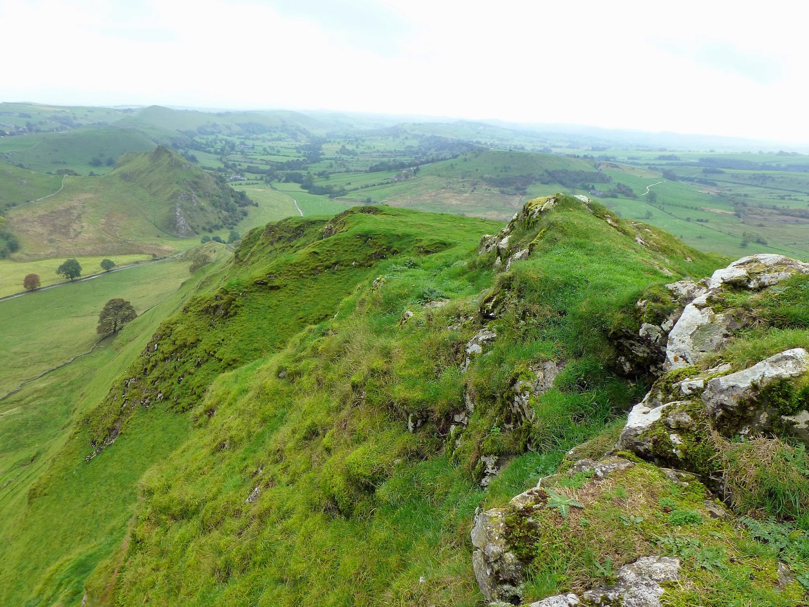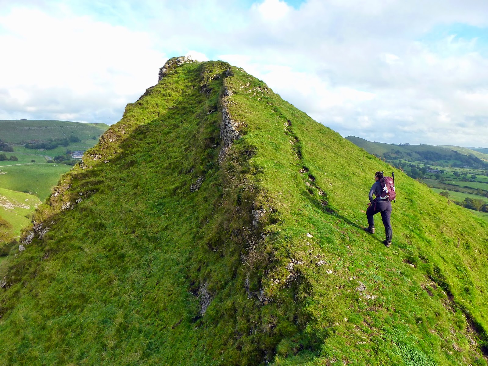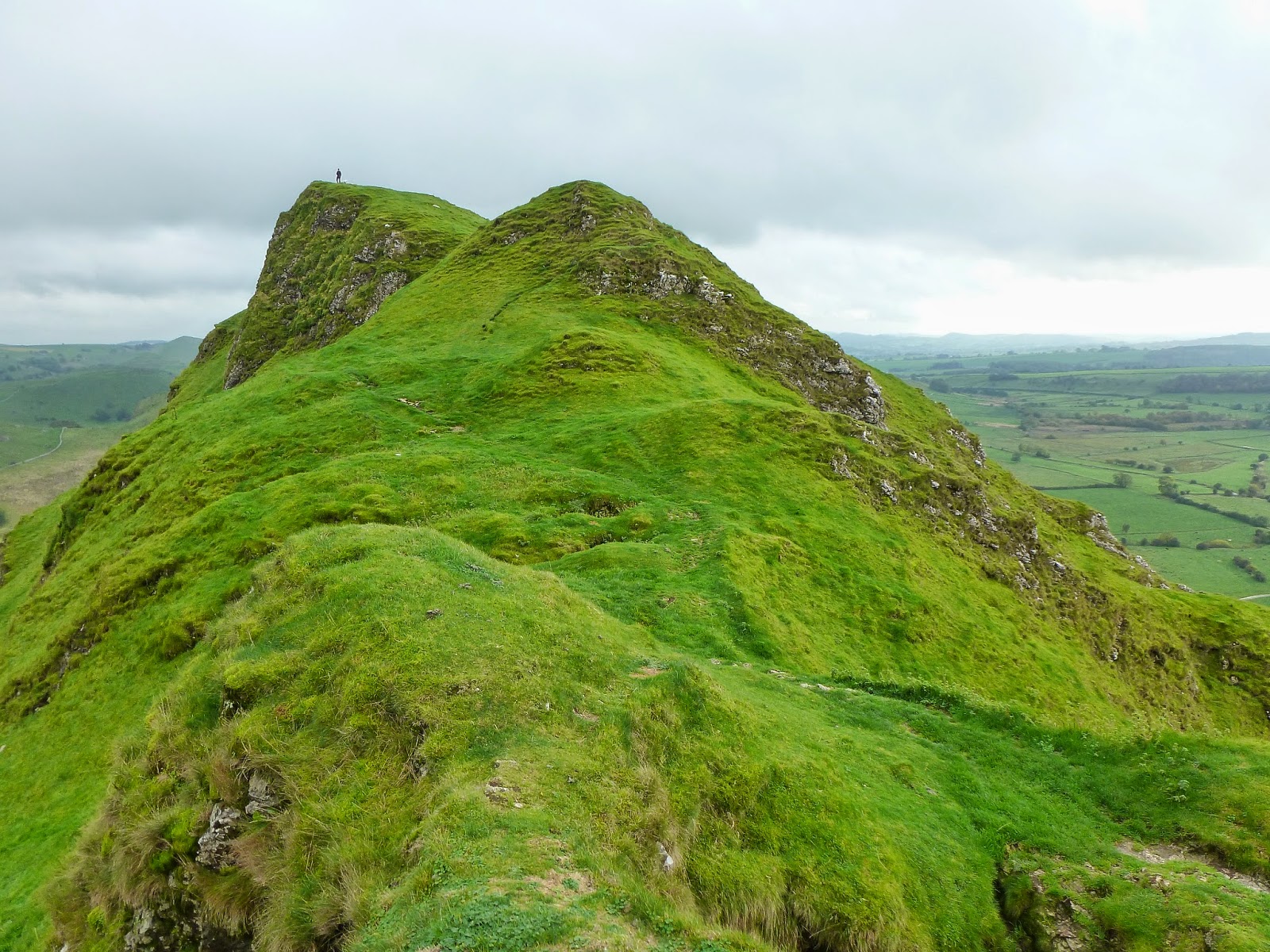 So, on to Parkhouse Hill, Chrome Hill’s smaller, even more knife-edged neighbour. After following the path down to the road, once again you’re given a choice of routes to get up to the top. We decided to head around to the right and climb a steep path that rounds a small tree and on to the ridge. From that point its a case of negotiating a series of limestone outcrops to find your way to the summit. Once again the views are excellent, especially looking back towards Chrome Hill.