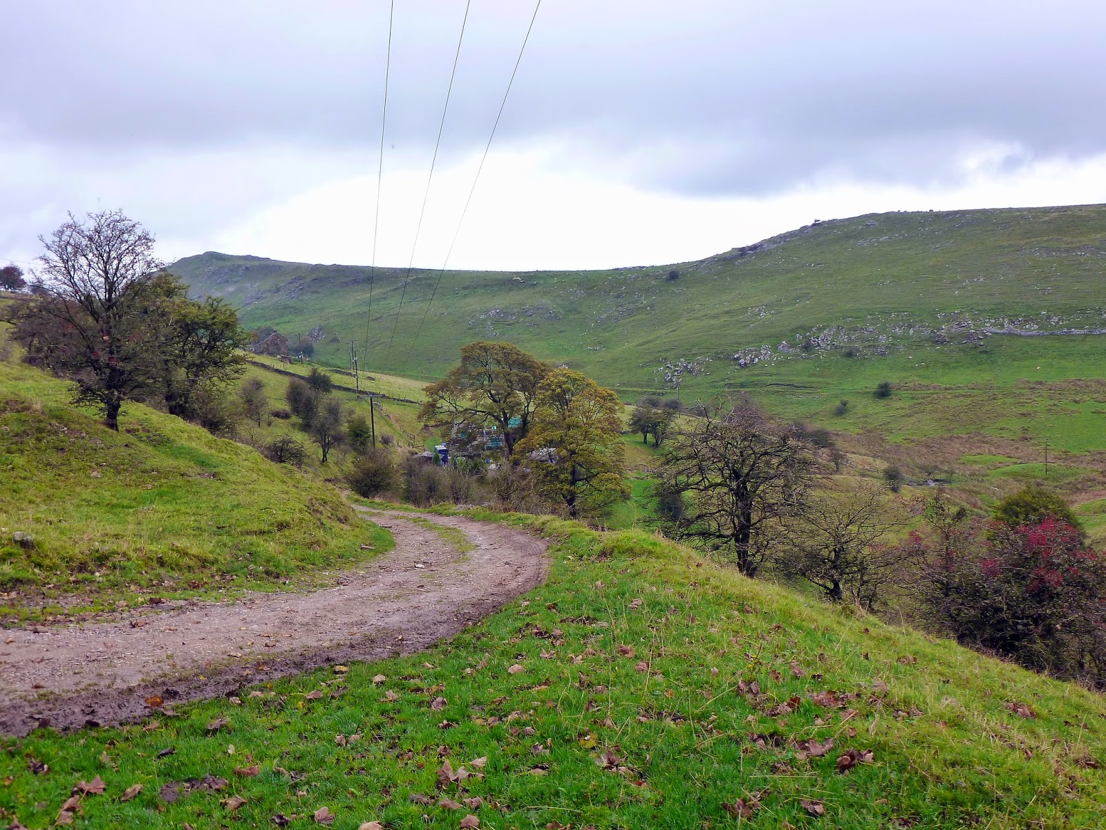 | A track leads down to Brand End Farm |