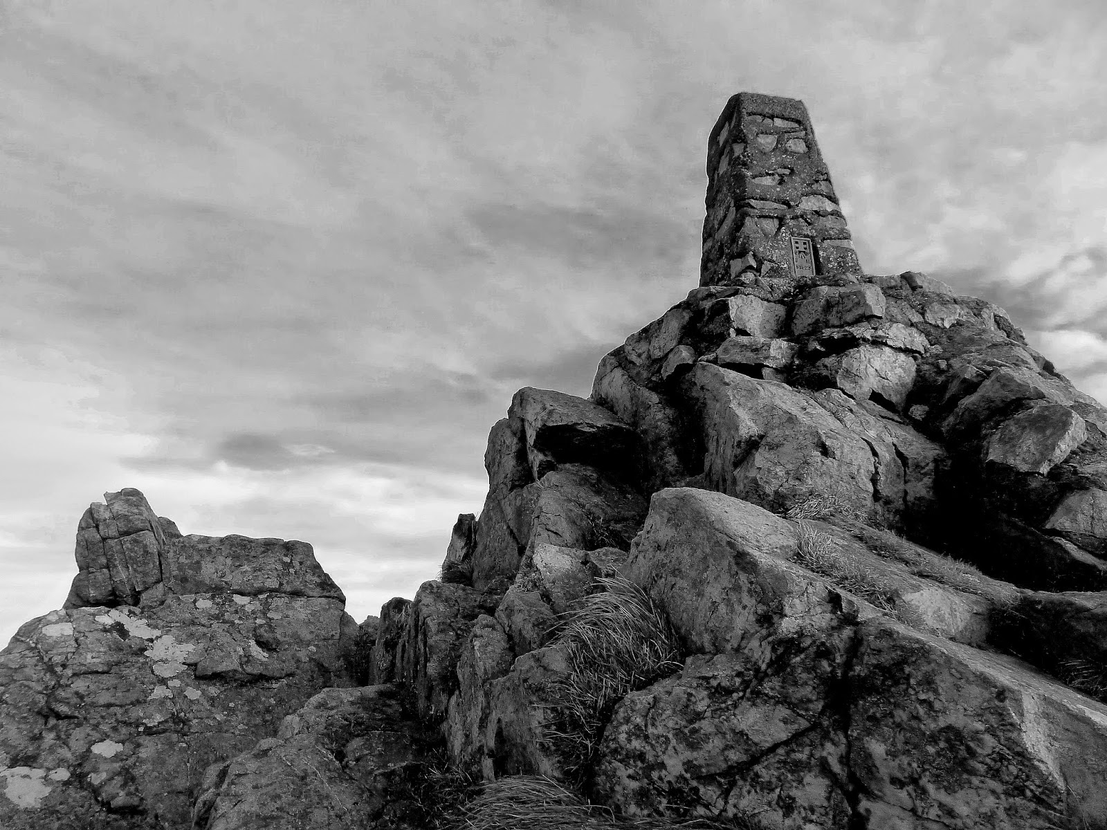 | A trig pillar marks the highest point on Manstone Rock |