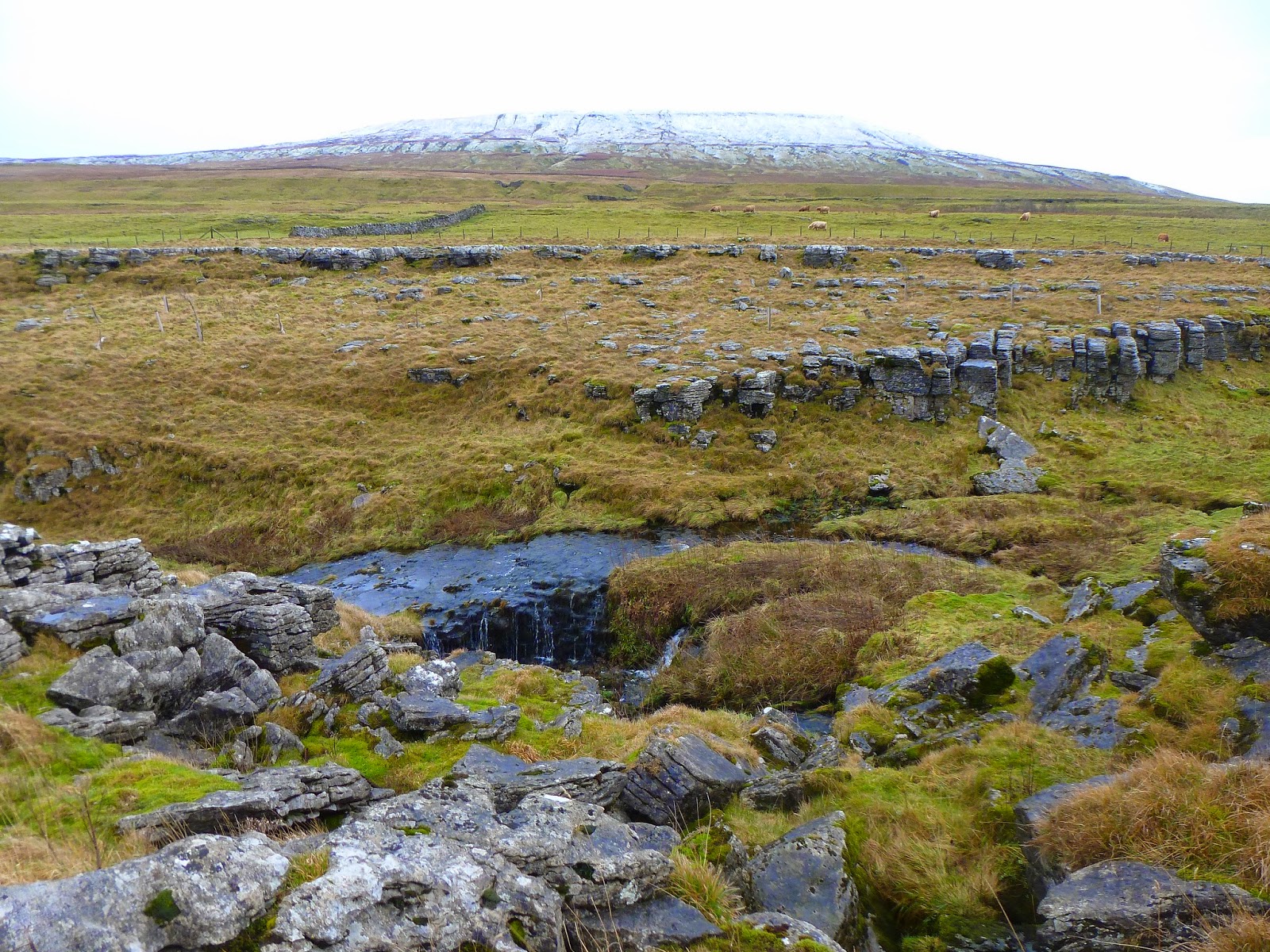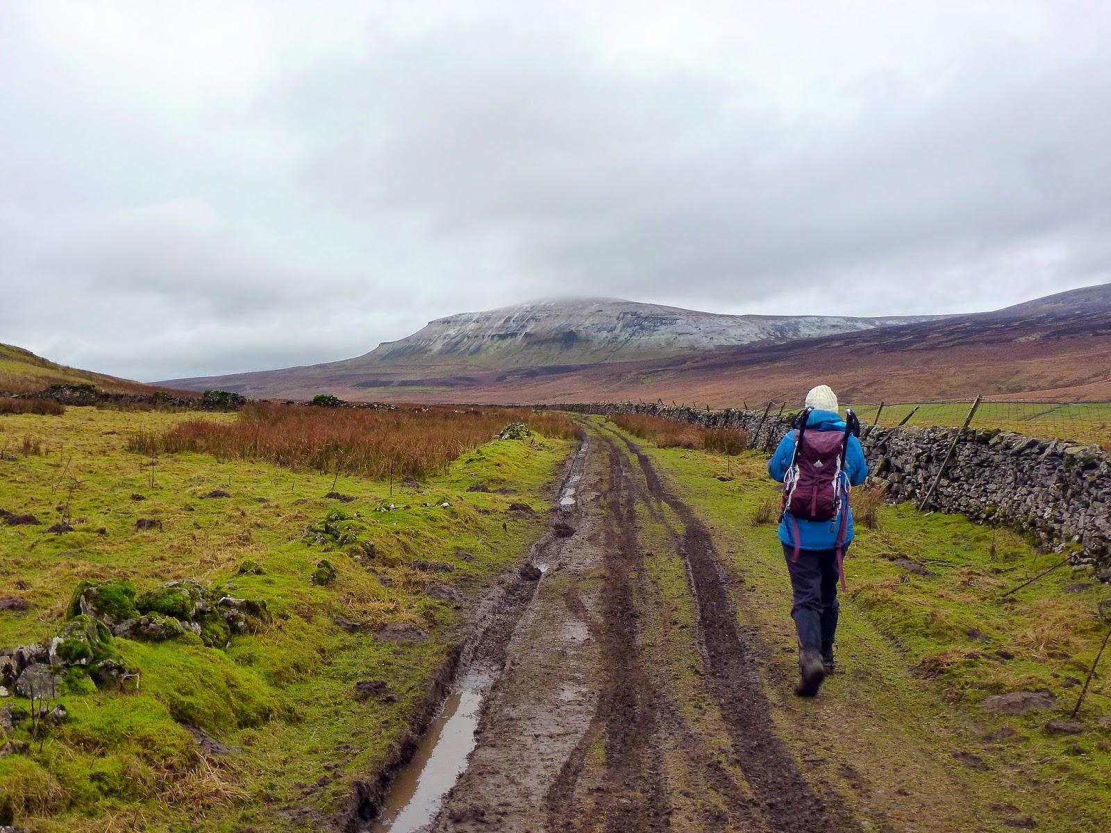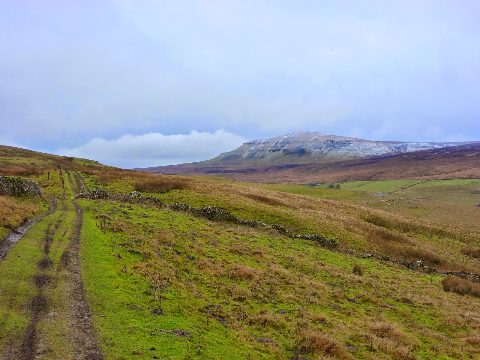 The track continues for a couple of miles varying from easily stroll-able to intolerably muddy, interspersed with some sort of middle ground. In addition to the growing presence of Pen-y-Ghent, we crossed an impressive un-named stream tumbling down the sides of Darnbrook Fell and into Pen-y-Ghent Gill. I must point out here that you are unable to see into the valley of Pen-y-Ghent Gill thanks to the steep sides that are found in the depths of the valley. We would have to wait to see its spectacle.