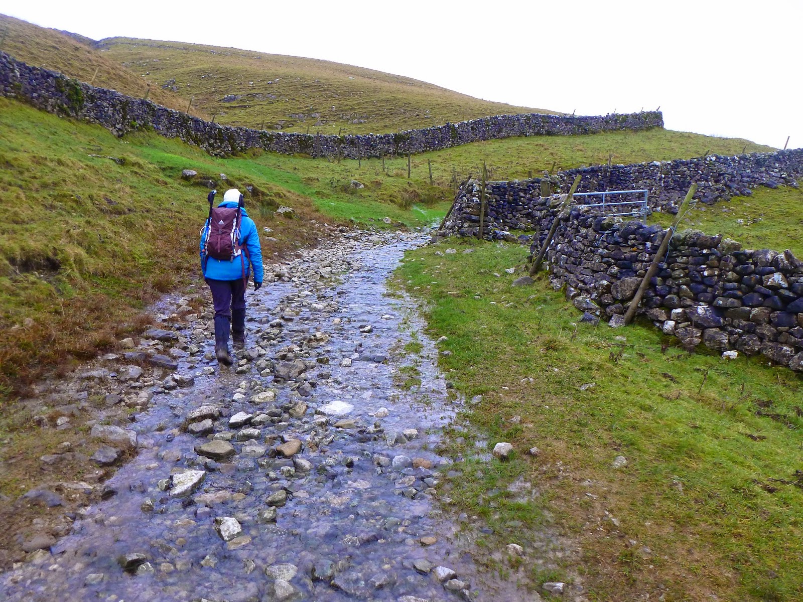 After the brief encounter with the Shetland, the path passes between a few walled lanes before rejoining our outward route at New Bridge. A short time later with the rain falling at its hardest, we reached the car and were glad for the refuge it provided. All that was left was an addition to our route home by taking the wonderful Silvderdale Road out of Littondale to Settle.