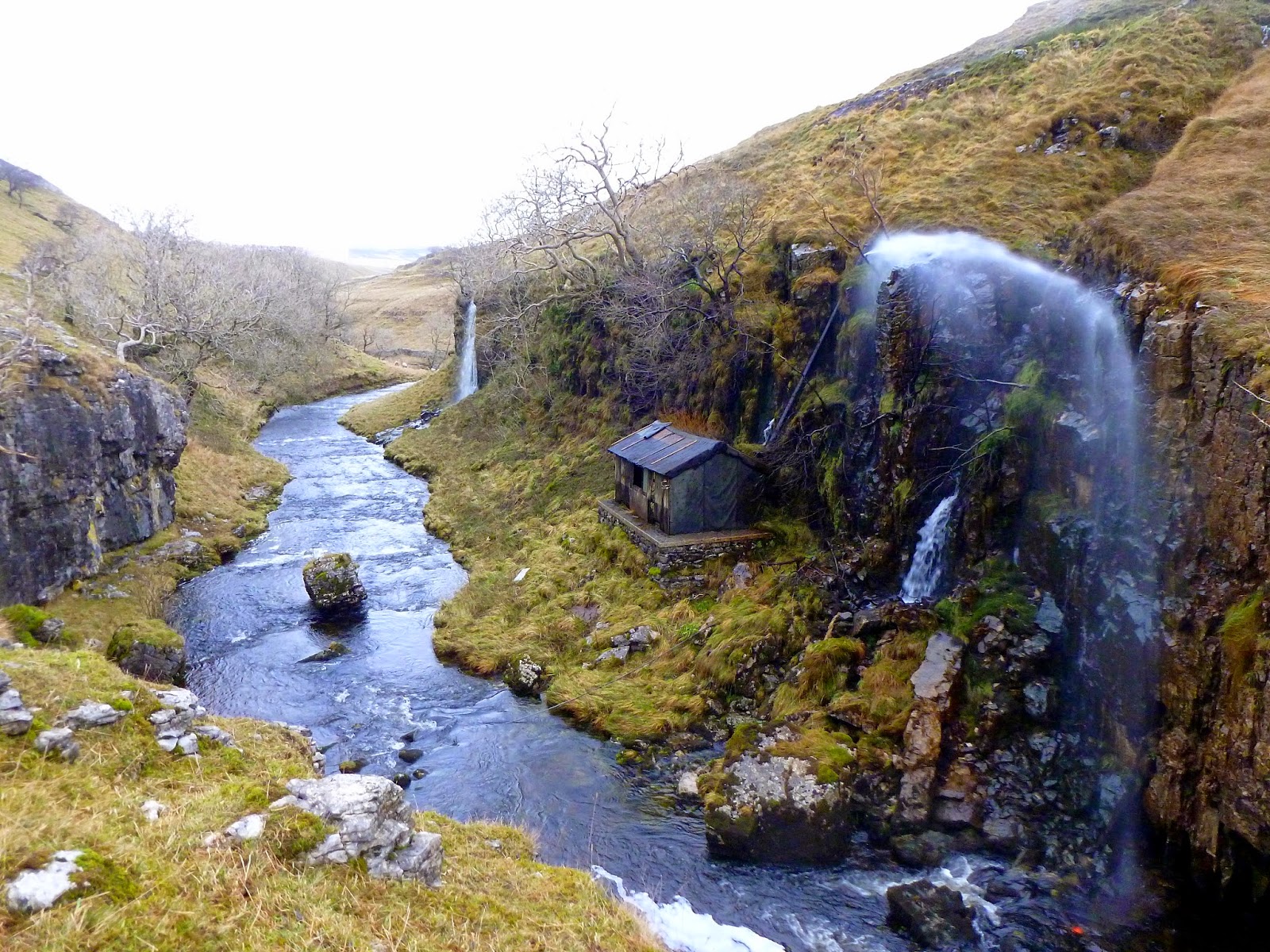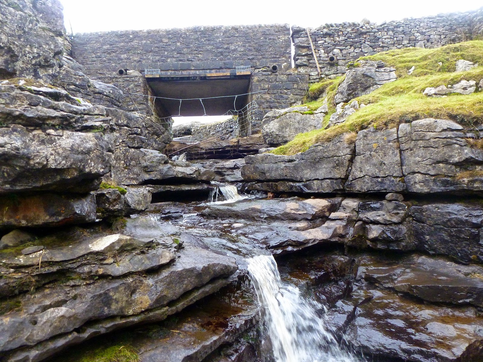 | Pen-y-Ghent Gill and an impromptu water fountain |