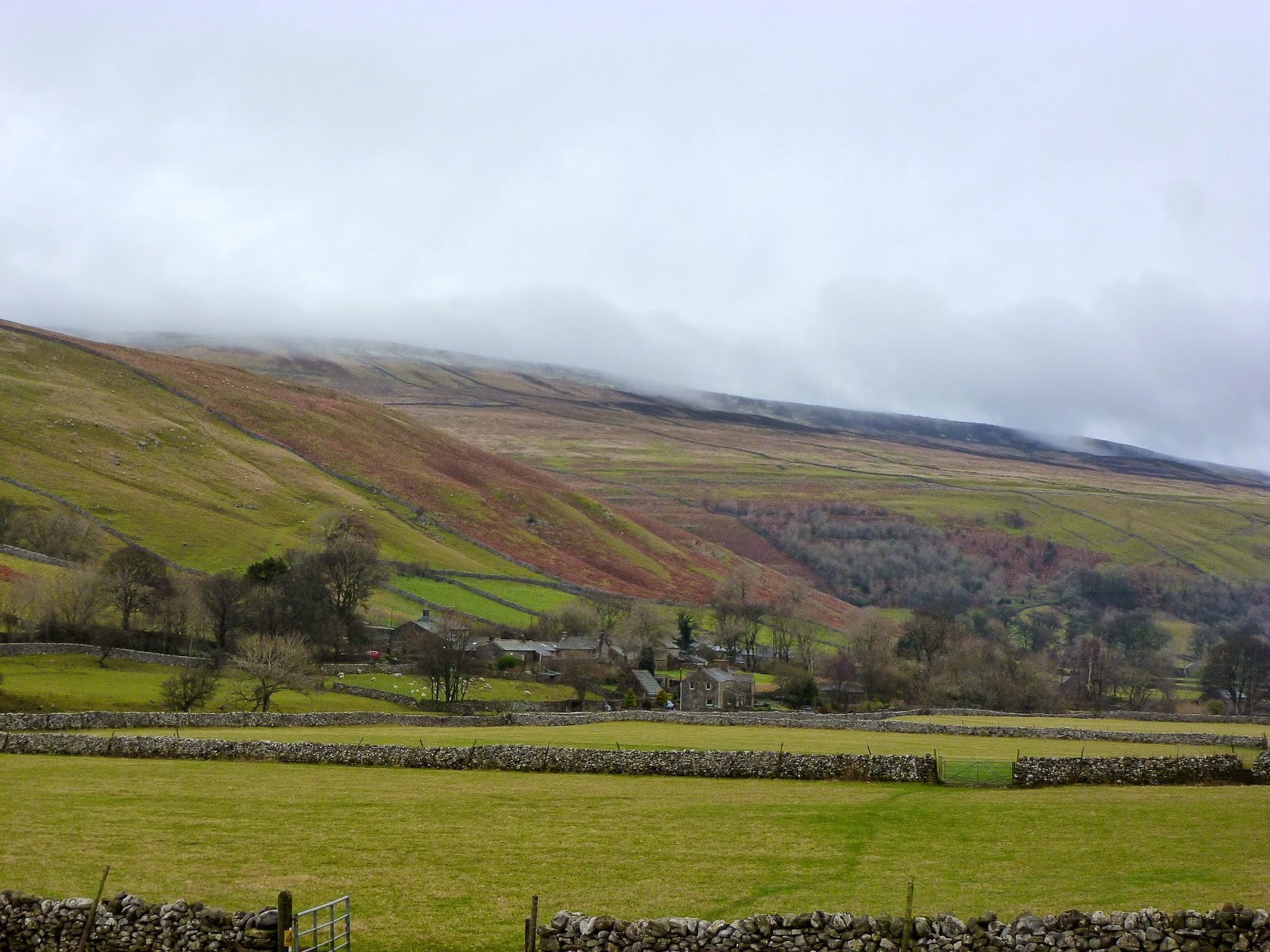 | A view of Litton underneath the slopes of Old Cote Moor. The path we took can be clearly seen |