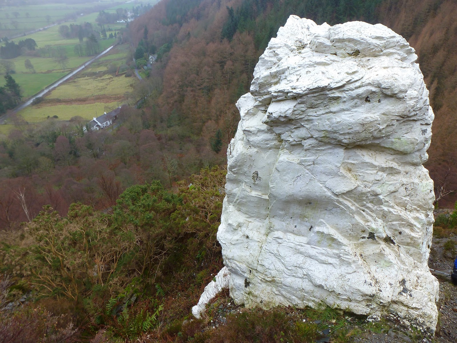 Passing the Clerk (now painted a splendid white, contrary to Wainwright’s writings), the objective of The Bishop seems an awfully long way away up a steep, slippery scree slope. It’s a tough climb, no doubt about it but you do gain a lot of height in a very short distance. Glancing back, the road and pub suddenly seem very distant below. After a number of minutes of plodding, pausing and repeating, we reached the aforementioned Bishop of Barf.