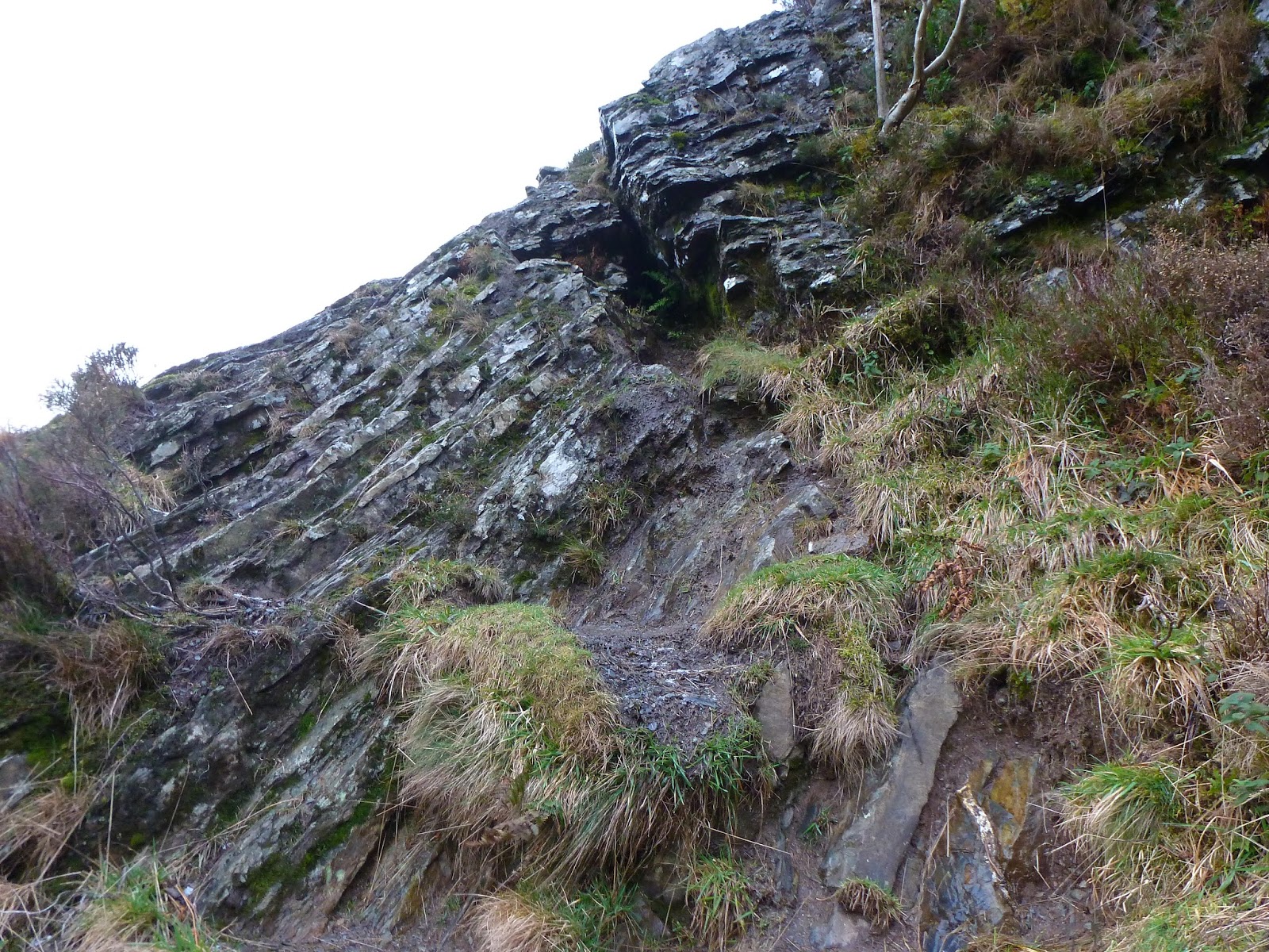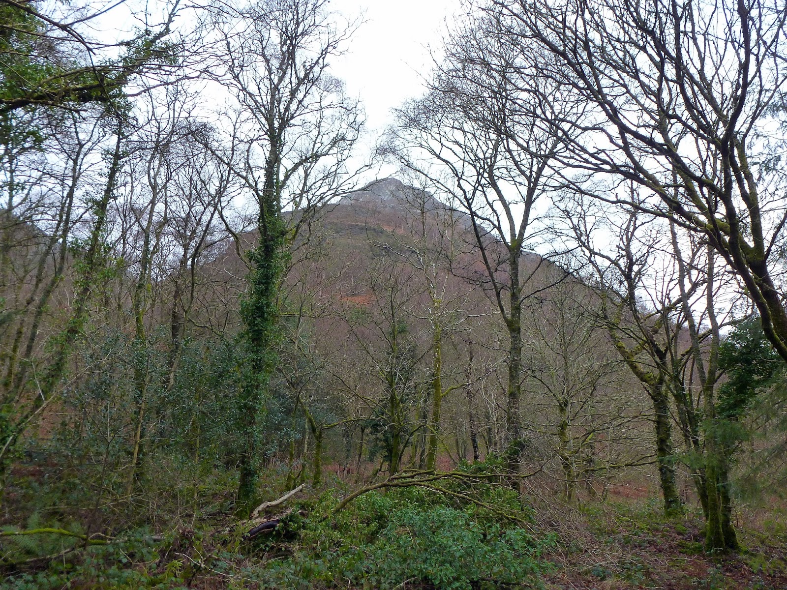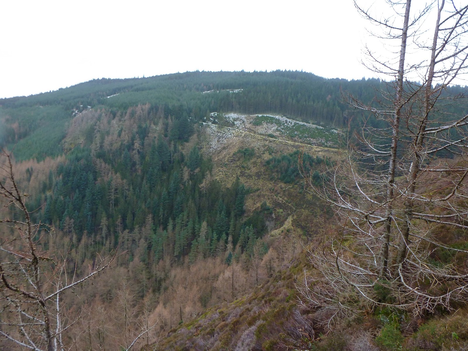 After pausing for a much needed breather at the Bishop, we ploughed steadily on, climbing up towards the seemingly insurmountable Slape Crag. As the weather men and women had suggested, the wind was starting to pick up, though we were reasonably sheltered from it by the mass of Whinlatter. It had also started to sleet making everything that bit more slippery and perhaps perilous, especially the short, exposed scramble that’s required to breach Slape Crag.