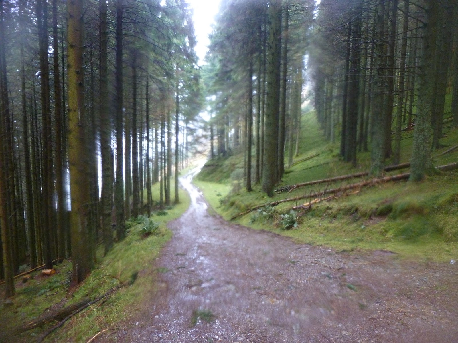 From our location, there were no real marked paths that would carry us back to the car so we used the abrupt line of trees of Whinlatter Forest to keep us going in the right direction. The enemy was no longer the wind now but tussocky grass that made walking that more difficult than I wanted it to be. By now, the wind driven sleet had turned to rain. Very heavy rain at that. Fortunately, approaching the head head of Beckstones Gill, the shelter from the trees would afford us some protection from the elements for our final downhill section.