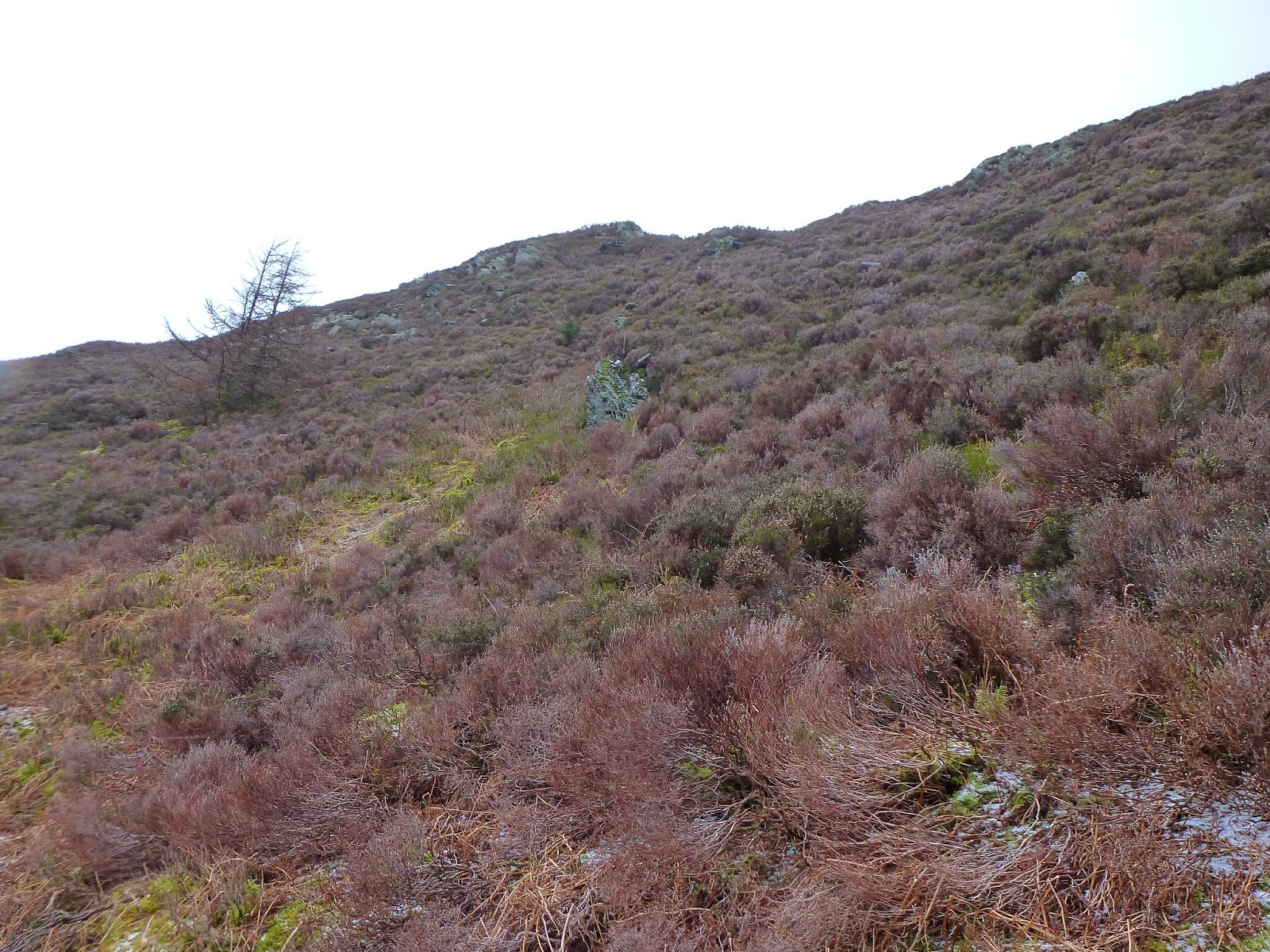 | The path follows a contour towards the head of Beckstones Gill…. |