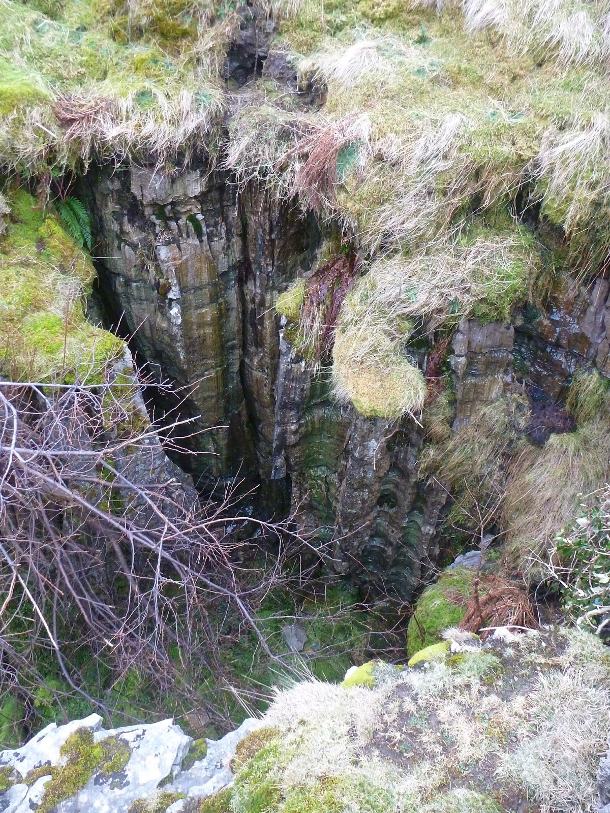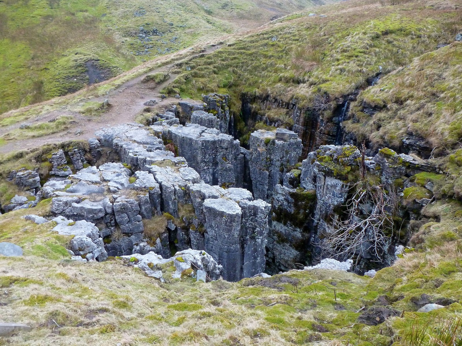 In short, the Buttertubs are a number of large limestone potholes, measuring some 20m deep in places. They are similar in formation to the classic clints and grykes found on areas of limestone pavements, however, in this instance, the erosive force of the water has burrowed down the cracks to such an extent that it has created a series of vertical limestone stacks, surrounded by deep holes and excavations. Why the buttertubs though? The most popular theory is that local farmers from Swaledale, on their way to and from Hawes, used the potholes as a convenient fridge to save them the effort of numerous trips over the pass carrying their dairy produce, probably (as the name suggests) tubs of butter. The Buttertubs are part of the Cliff Force Cave SSSI.