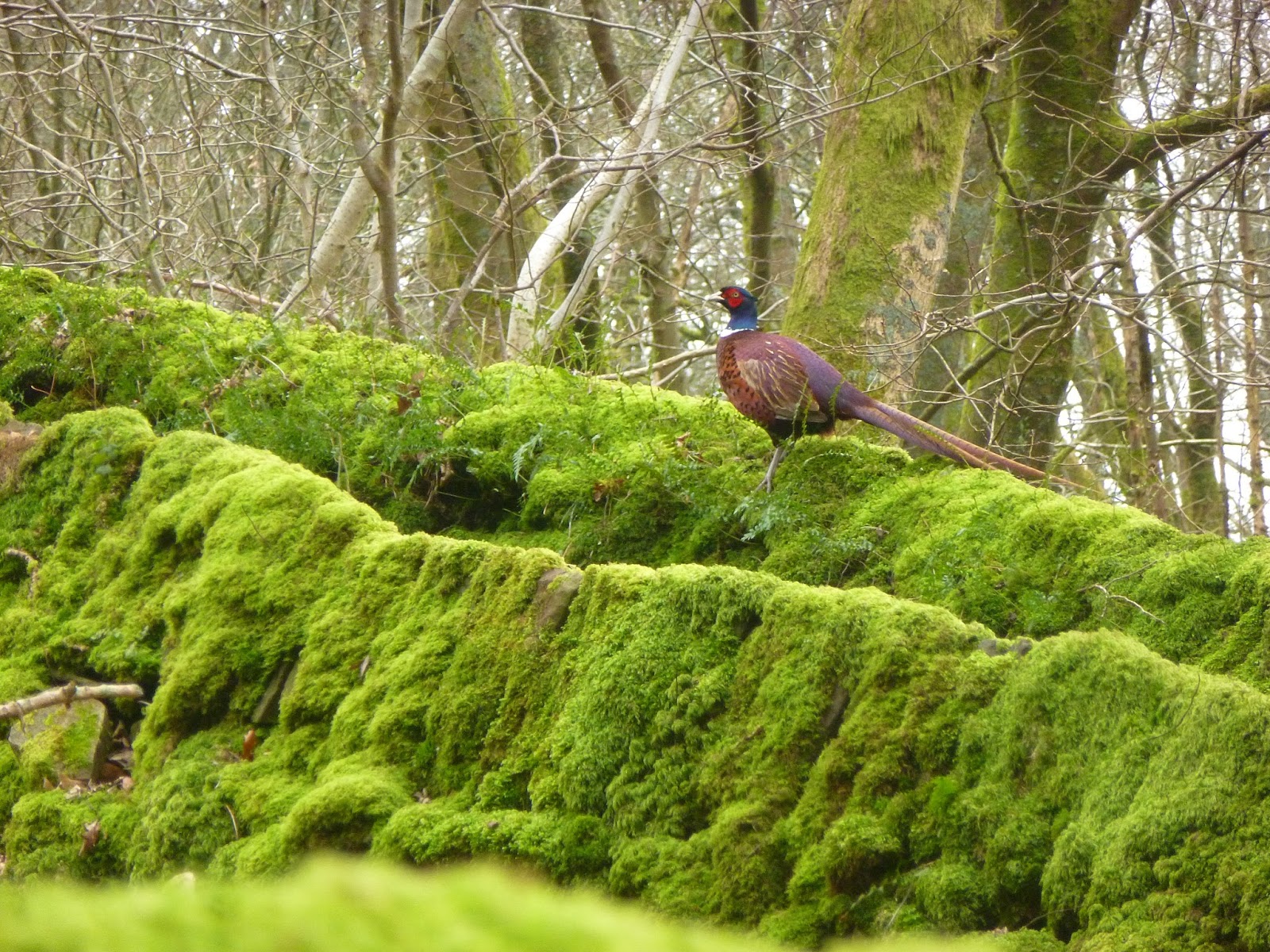 | A pheasant guarding the walled lane back to the road |