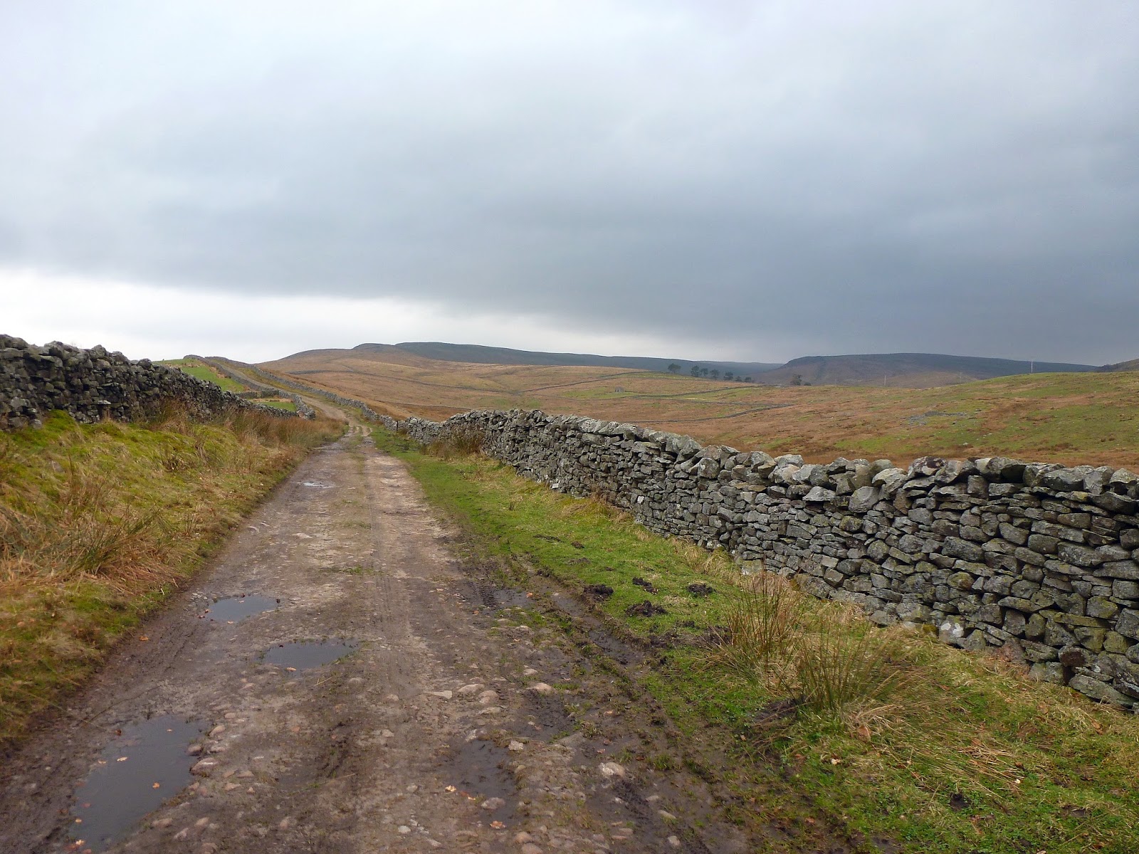 | The walk starts along a wide track through Hardraw |