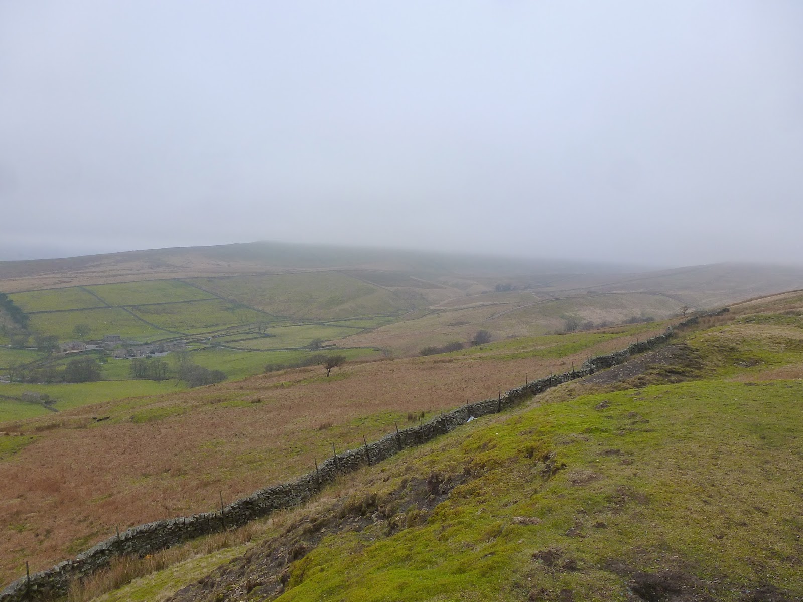 Now for the more interesting part of the walk, a straight (almost) shot across the moor to The Buttertubs before a climb up to Lovely Seat. The descent down to the Buttertubs Pass is actually much more straight forward than I anticipated. A fairly sturdy fence leads directly to Hood Rigg, some 2 kilometres away and easy to follow. It wasn’t as boggy as I had thought it might be either, only a couple of areas required a detour to avoid the inevitable. In fact, even the clouds were playing fair and stayed at a height that allowed me to actually see where I was going which always makes a huge difference when travelling off-piste.