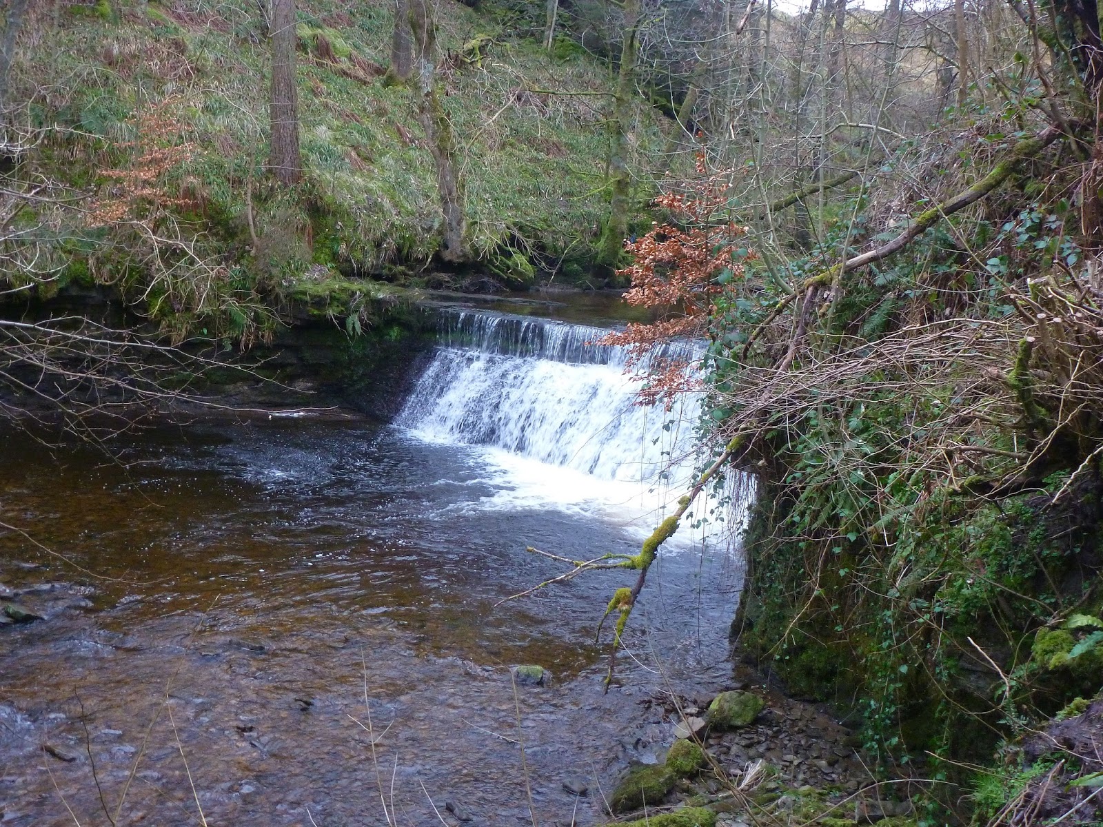 As it was still before midday, I decided to follow the bridleway round to Pike Hill instead of dropping down to the road, and following a marked track to Hungry Well. A short road section was inevitable but luckily, there was little traffic travelling around. A gate stile leads into a series of fields before reaching the hamlet of High Shaw. It is here that I noticed a fairly new looking path that leads down alongside the river as it flows through Shaw Gill Wood. I had a suspicion that it may lead to a vantage point at the top of Hardraw Force, which it turned out not to, but it was a very pleasant stroll all the same.