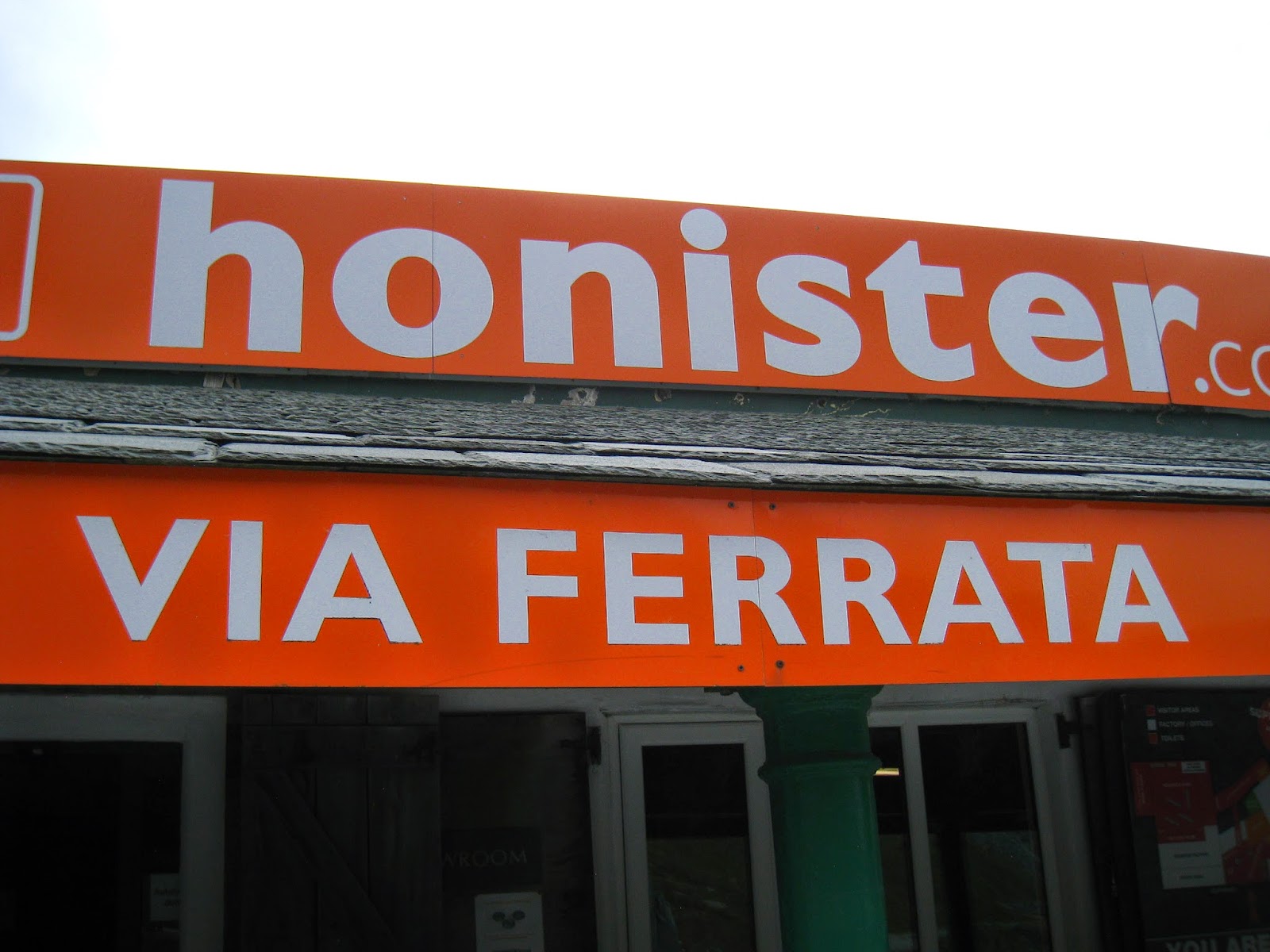 Some of you may be aware that Honister is home to the UK’s only via ferrata route (excluding a small one that can be found at How Stean Gorge in the Yorkshire Dales). For those of you who aren’t aware, a via ferrata (Italian for “iron road”) is a protected climbing route – generally found in the Alps. The essence of a via ferrata route is a steel cable that is periodically bolted to the mountainside, in addition to other climbing aids such as metal rungs, pegs and bridges. This allows even the most inexperienced (like us) to experience something resembling rock climbing, without the risk of falling or the actual requirement to be able to do it.
