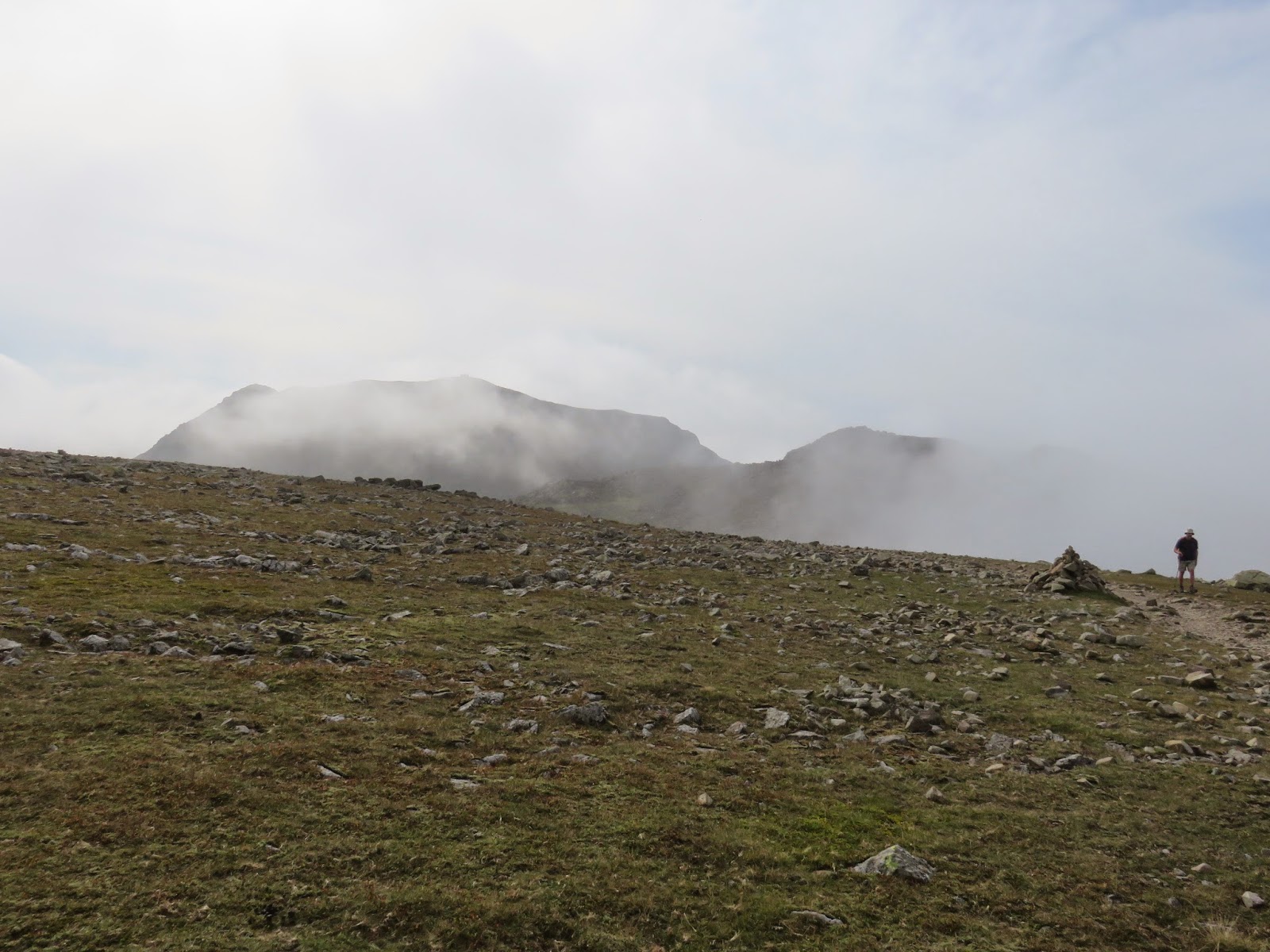 A deep col separates Scafell Pike from Broad Crag, a bit dispiriting considering the efforts undertaken to reach Scafell Pike. Still, it would be even more dispiriting approaching from the other direction, the summit stands so close yet apparently so very far away. Clouds were beginning swirl in by this point, shielding the best of the views which was a shame. We reached Broad Crag, staked our claim to it and pressed on, over the strewn boulders to the col between Broad Crag and Ill Crag.