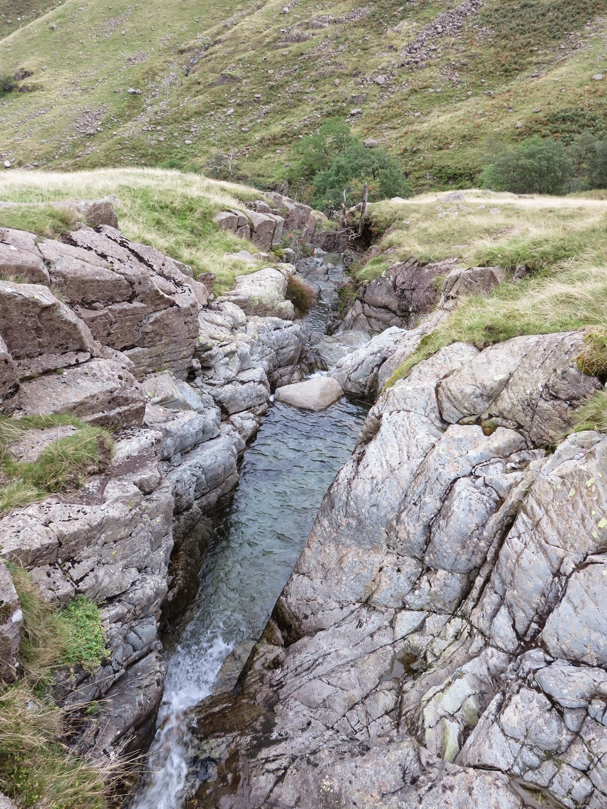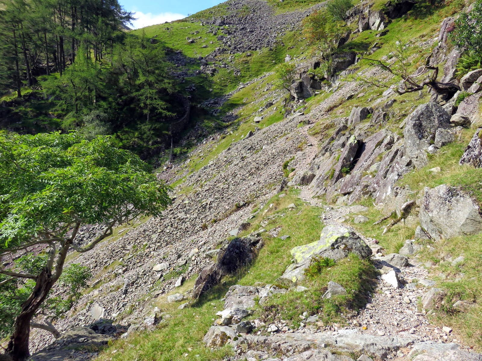 Another awkward gill crossing is required a the halfway stage, a brief scramble required to get down to it. The path crosses the gill without drama before continuing one, still climbing.