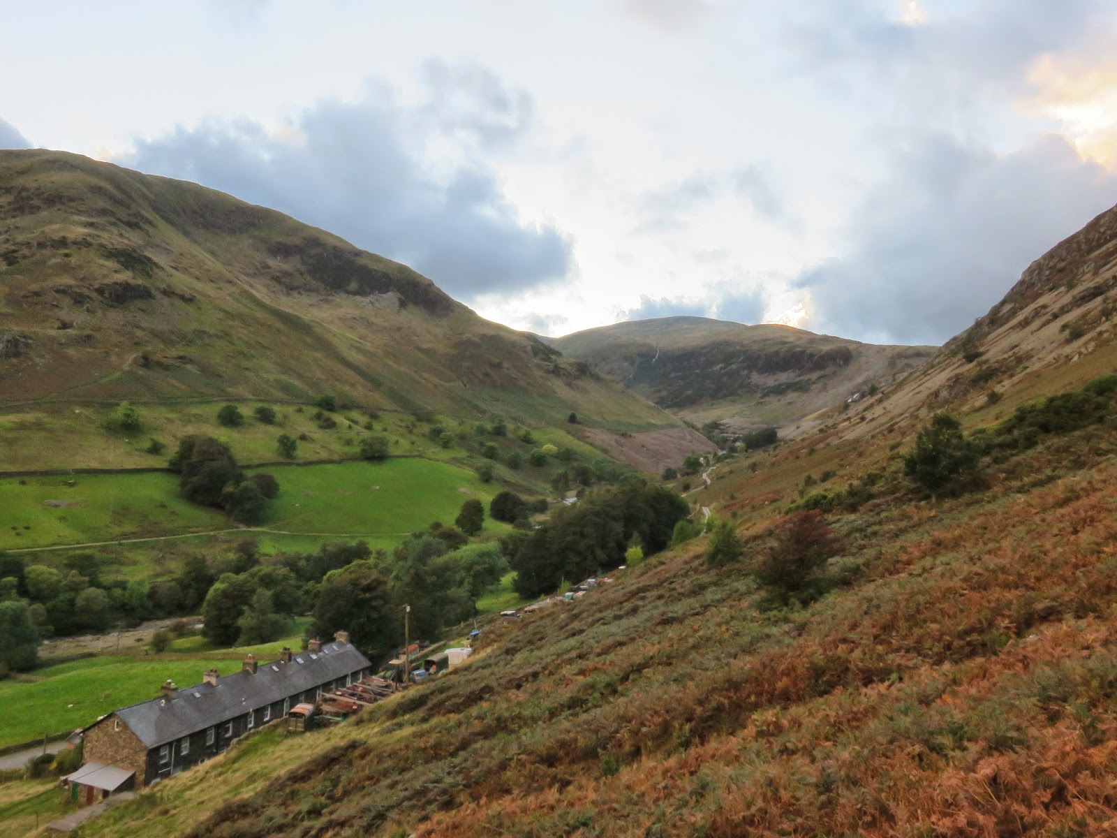 A steep, loose path winds its way down to Glenridding, though we found no evidence of it beyond The Rake, the supposed route between the rocks of Blae Crag. Instead, we followed an obvious route that eventually met a row of cottages perched alongside the Greenside Road, the route to the mine and a popular track for pedestrians making their way down from adventures on Helvellyn.