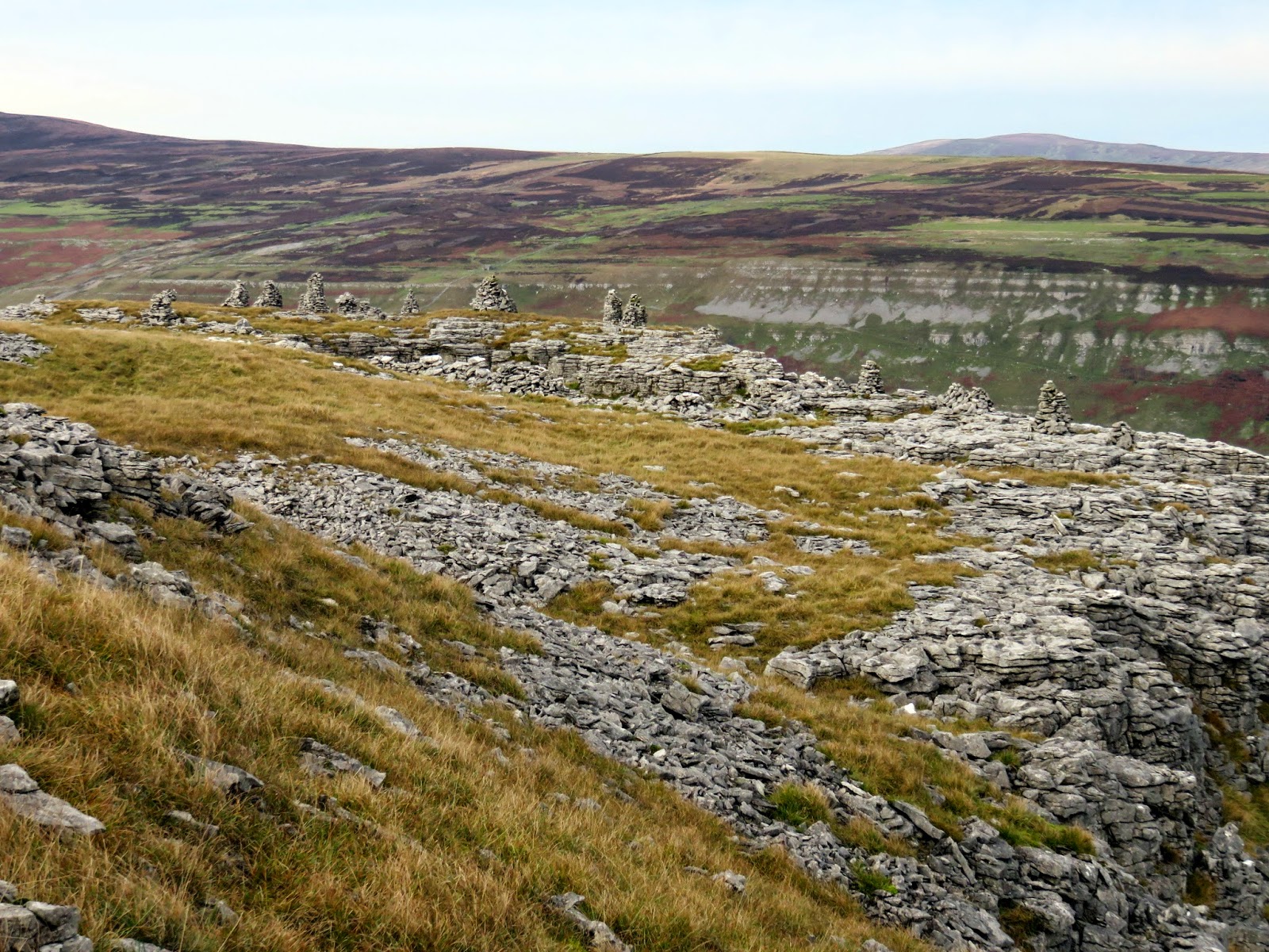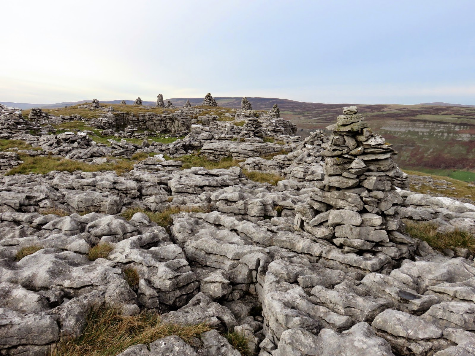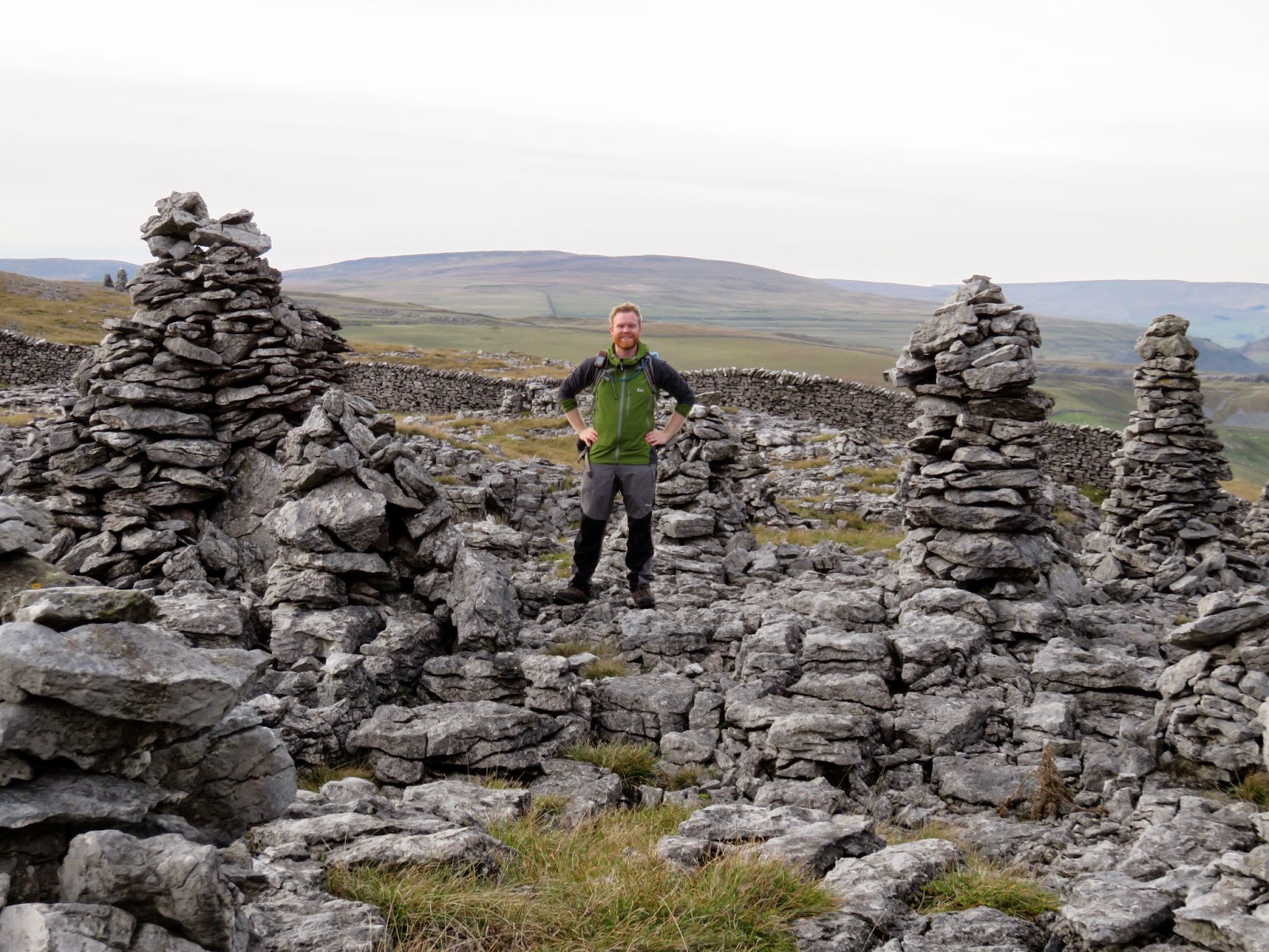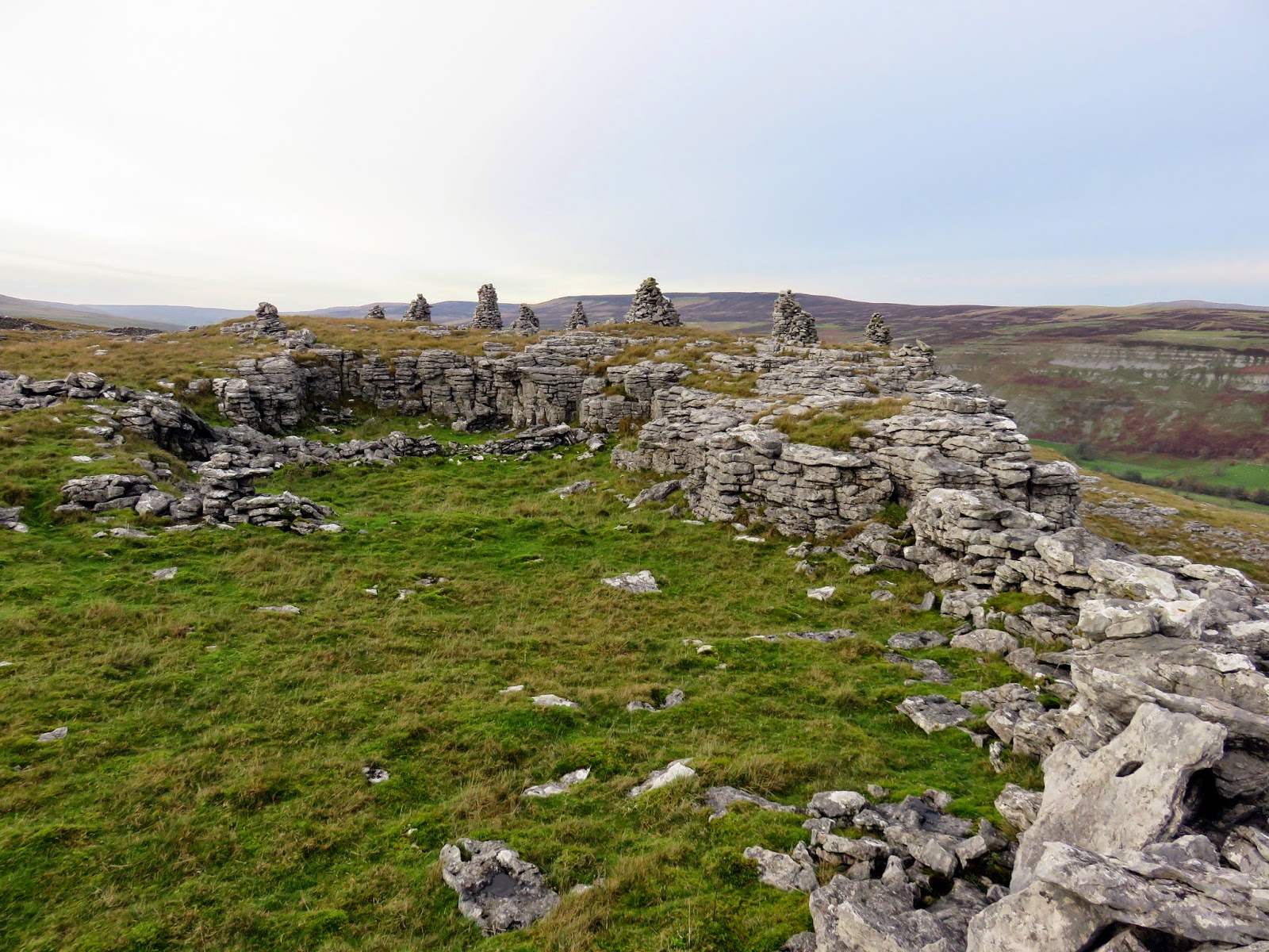 A large (and I mean very large) cairn sits amongst a pile of limestone boulders, arranged in an odd circular fashion. It marks the beginning of a great line of mining shafts so I can only assume it is the remnants of an industrial past. Failing that, it does resemble a similar structure on Beamsley Beacon that’s of a much more ancient origin but I can’t find any information to support this theory.