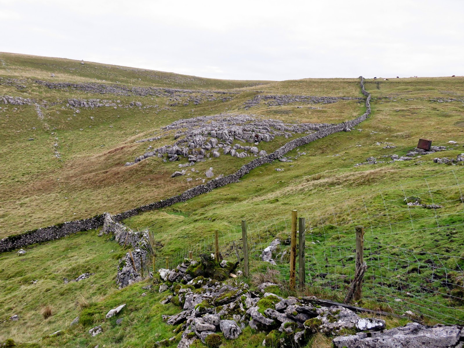 After nosing around as far as we dared, including the old ‘lights off in a cave to see how dark it really is’ (turns out very), we returned to the surface to make our way down the hillside to the car. I’d used a very informative post someone wrote about the caves to work out how to reach the roadside again (in addition to recreating some of the facts; you can see the whole piece here). The key to the operation is to aim for Sleets Gill Cave and then follow the stream down to the road, which we duly did after an awkward fence crossing.