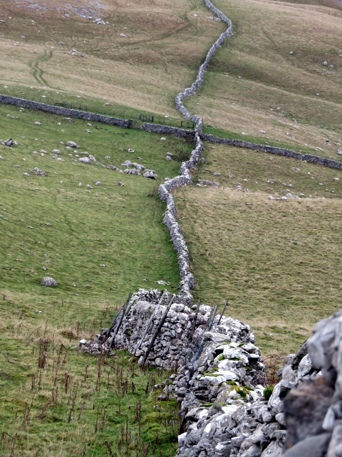 | A look back down the wall we were following |