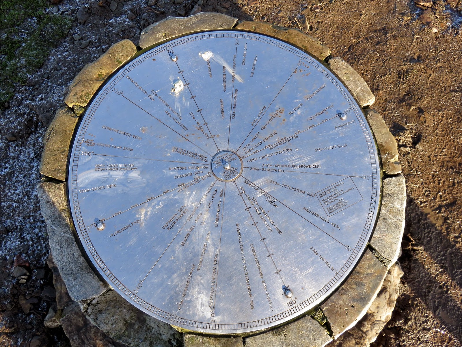 Pole Bank has a trig pillar and a toposcope which we viewed with eager eyes as it has extensive views in nearly all directions. The best on this day were to the north and west, across the Stiperstones and into Wales. Despite its domination of the area, Pole Bank (and thus the Long Mynd) is in fact only the third highest spot in Shropshire, beaten to the title by Brown Clee Hill and the aforementioned Stiperstones.