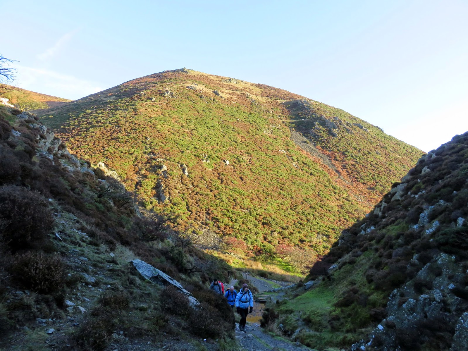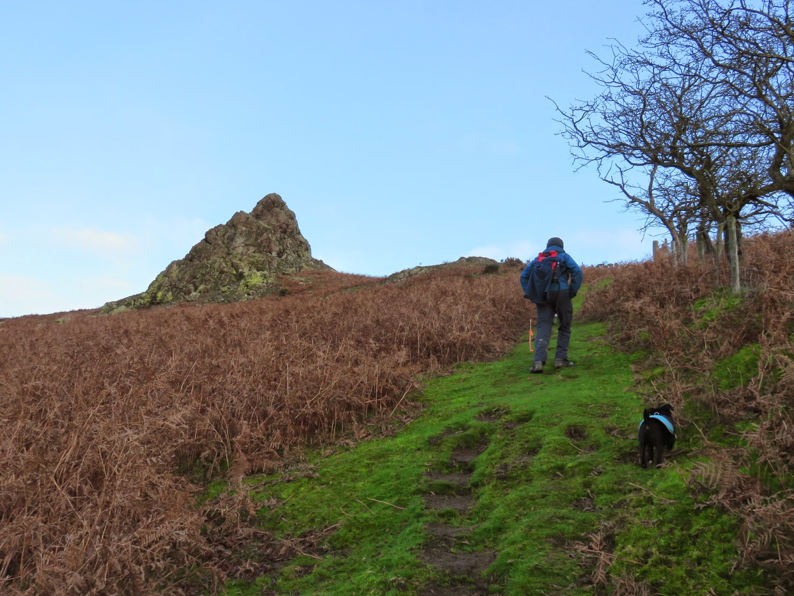 | Climbing towards the Gaer Stone |