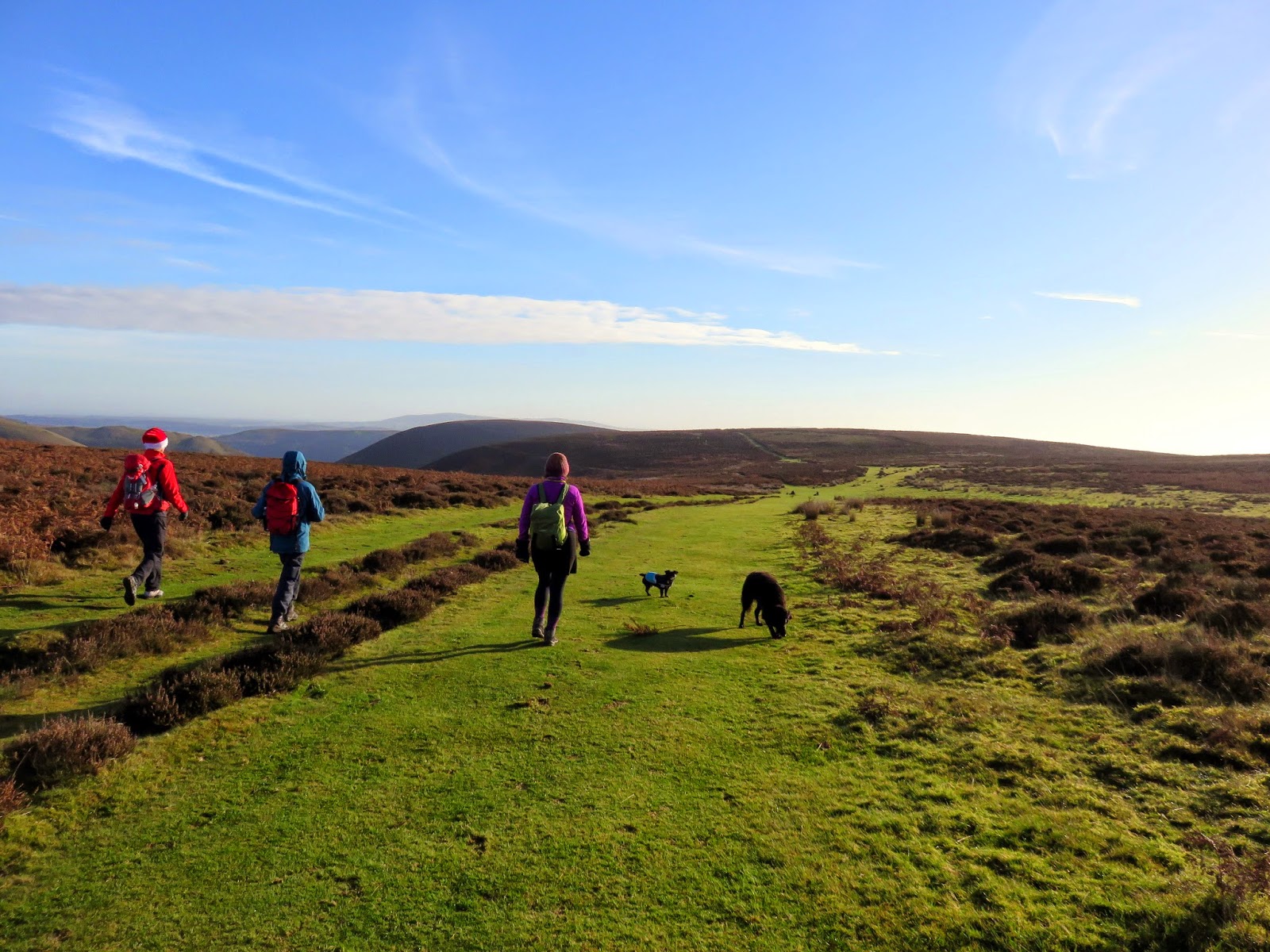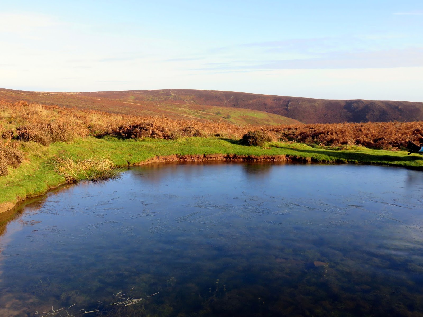 We climbed out of the valley into the glorious morning sunshine and made our way towards the spring at Boiling Well. The Long Mynd is odd in a way as is has a number of well-defined tracks and a road that criss-cross the top. Many of these are ancient routes such as The Portway (a 36 mile Roman Road) while others like the Jack Mytton Way (named after an eccentric gentleman from the 1800s who was known for leading naked fox hunts and owning over 1,000 hats) and the Shropshire Way are newer inventions. Following the signage, we followed the track that leads up Pole Bank, the high point of the Long Mynd.