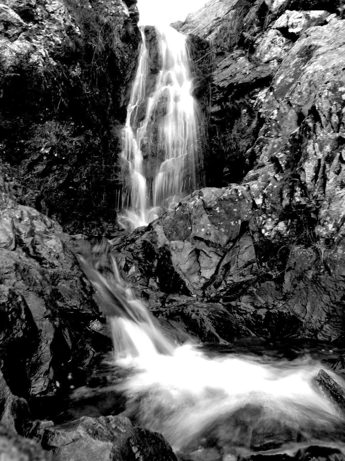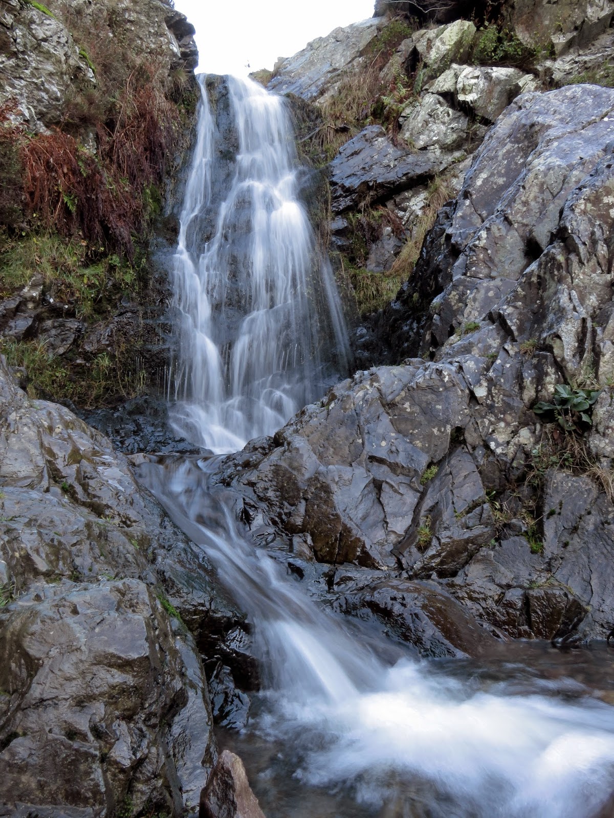 The rocky path, worn smooth in many places, snakes uphill around interlocking spurs before it opens out at the foot of the falls. They are small but perfectly formed, though I think their description as ‘a miniature Niagra’ by the Victorian visitors is a bit of an over exaggeration. Still, it gave ample opportunity to play with the camera.