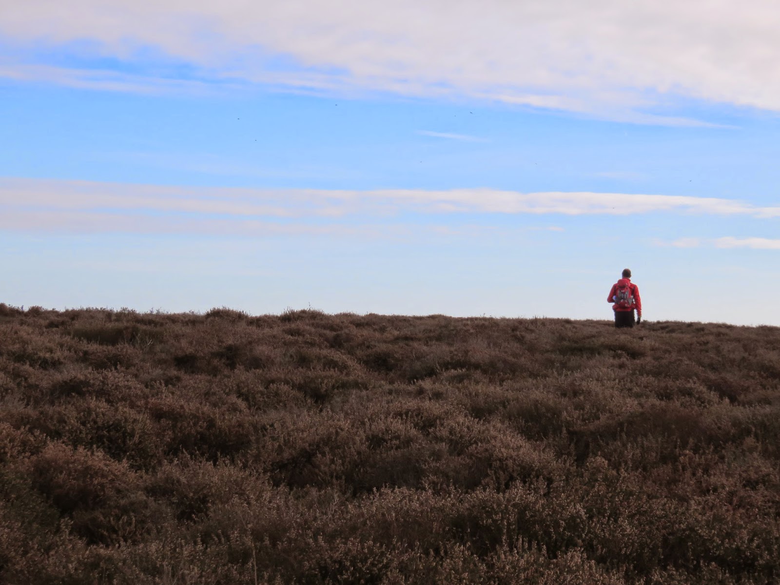 | Climbing through the heather on Grindle Hill |